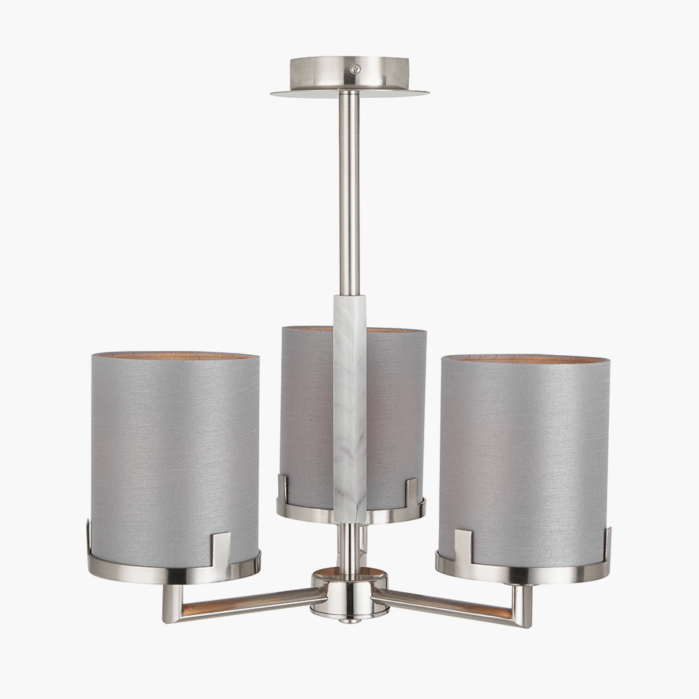 Elevate Your Space with the Midland Brushed Nickel and Grey Marble Effect 3 Arm Pendant