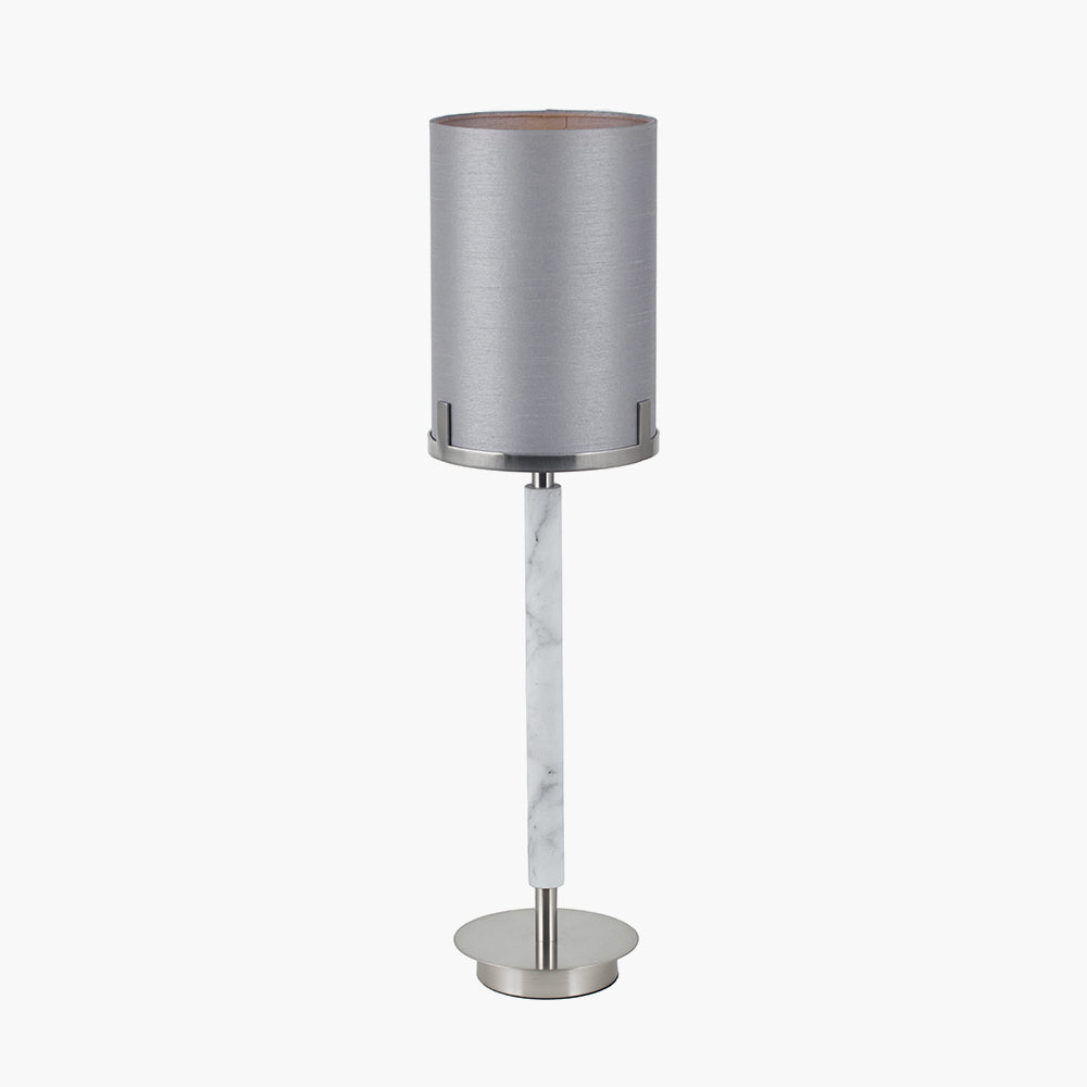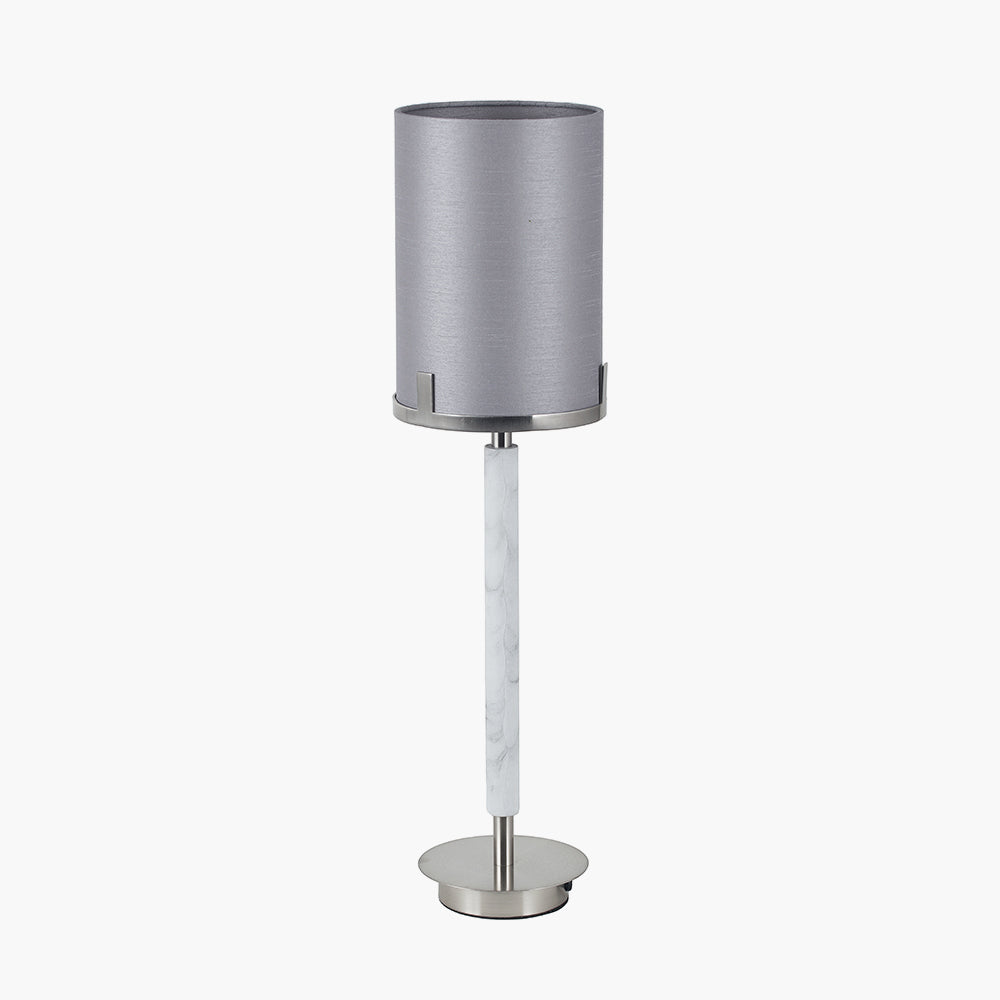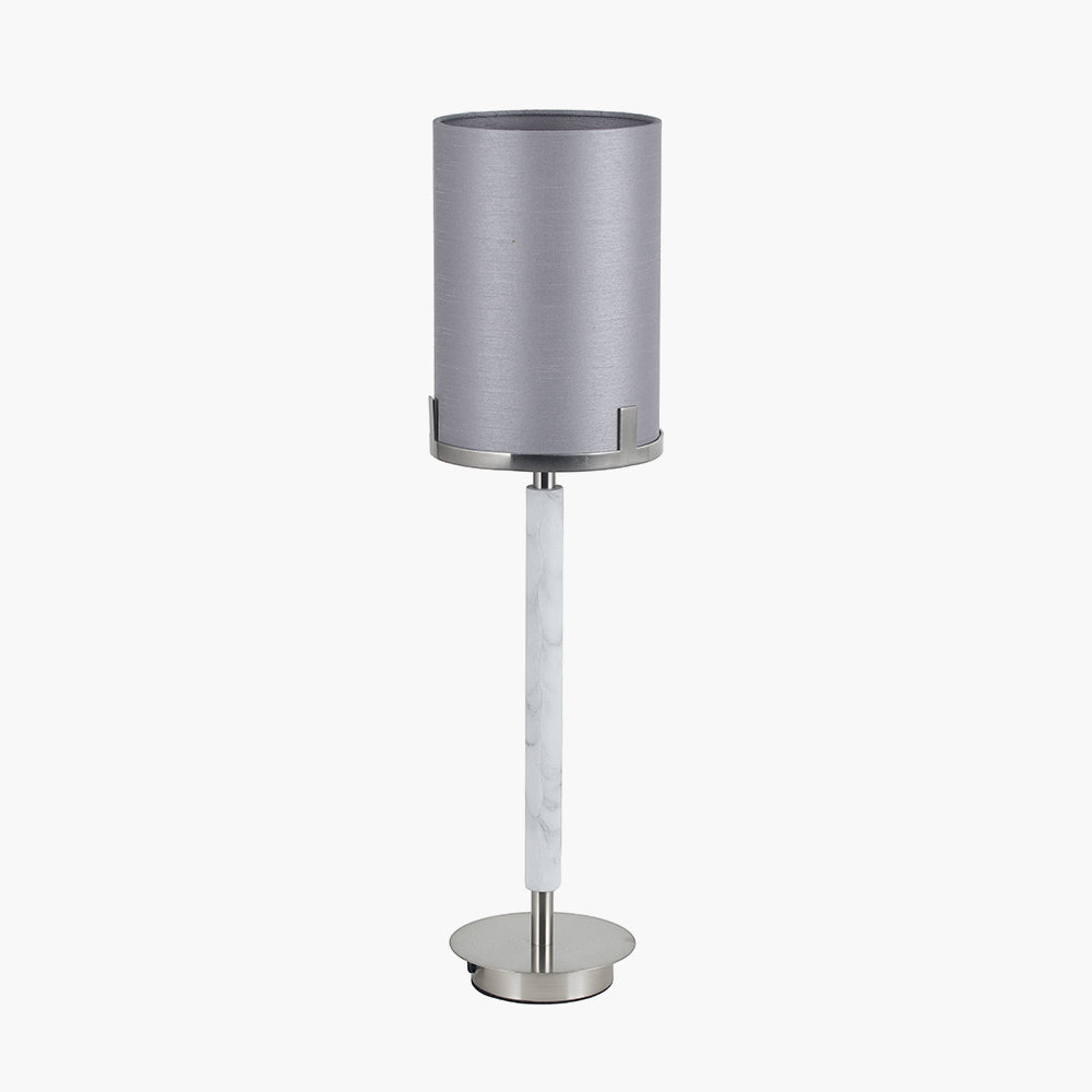 Transform your home decor with the Midland Brushed Nickel and Grey Marble Effect Table Lamp, a stunning blend of elegance and modernity. This exquisite lamp is designed to elevate any room, making it the perfect addition for console table styling.
