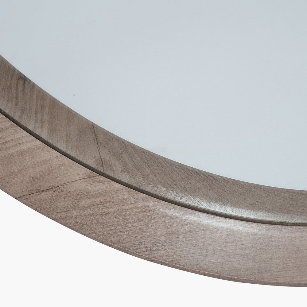 Natural Wood Veneer Deep Edge Round Wall Mirror Large