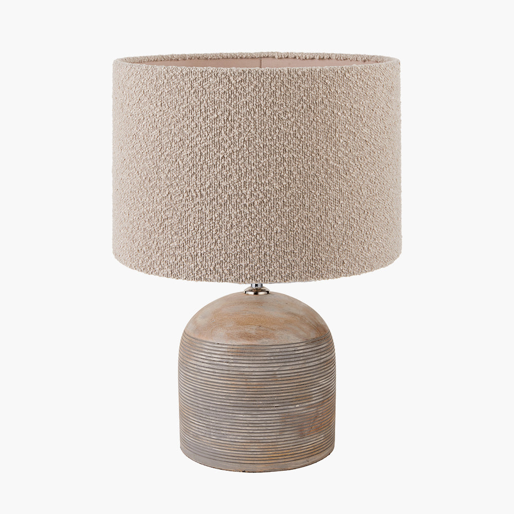 Nelu Grey Engraved Wood Dome Table Lamp Base with Rouen 35cm Taupe Boucle Cylinder Lampshade