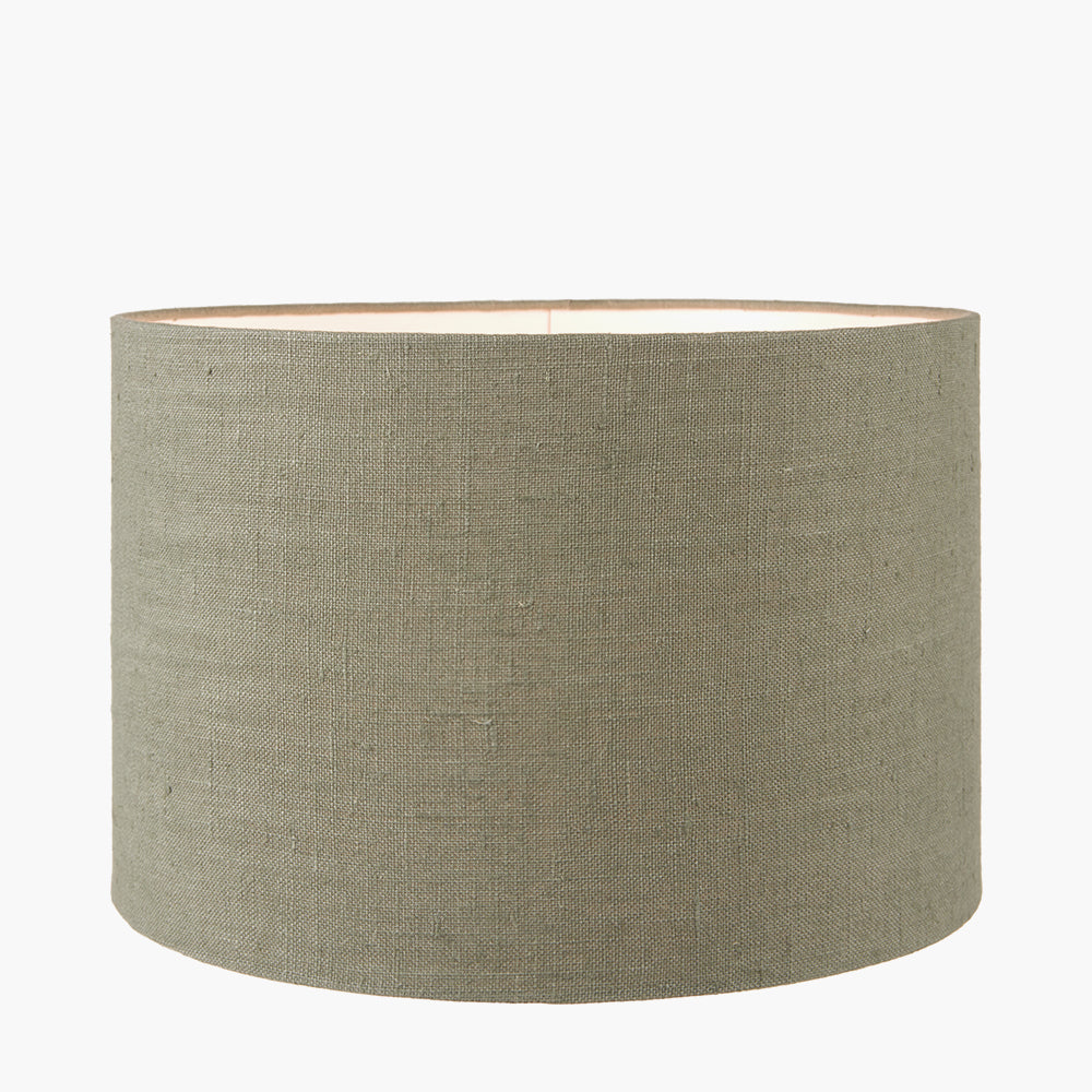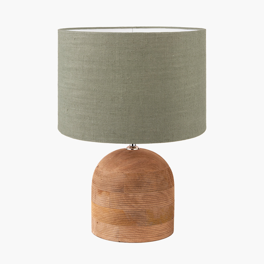 Nelu Natural Engraved Wood Dome Table Lamp Base with Edward 35cm Pistachio Green Linen Cylinder Lampshade