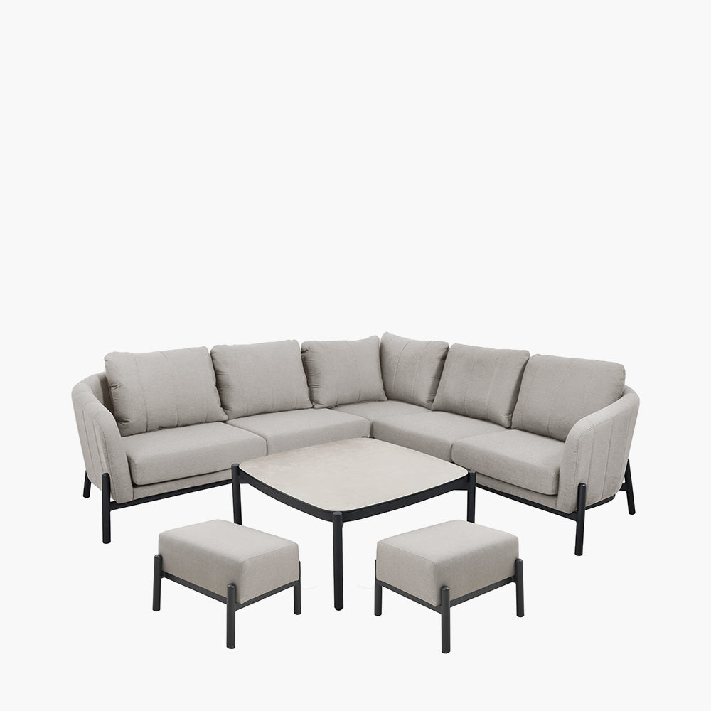 Nevada Putty Small Outdoor Corner Seating Set with Coffee Table and Footstools