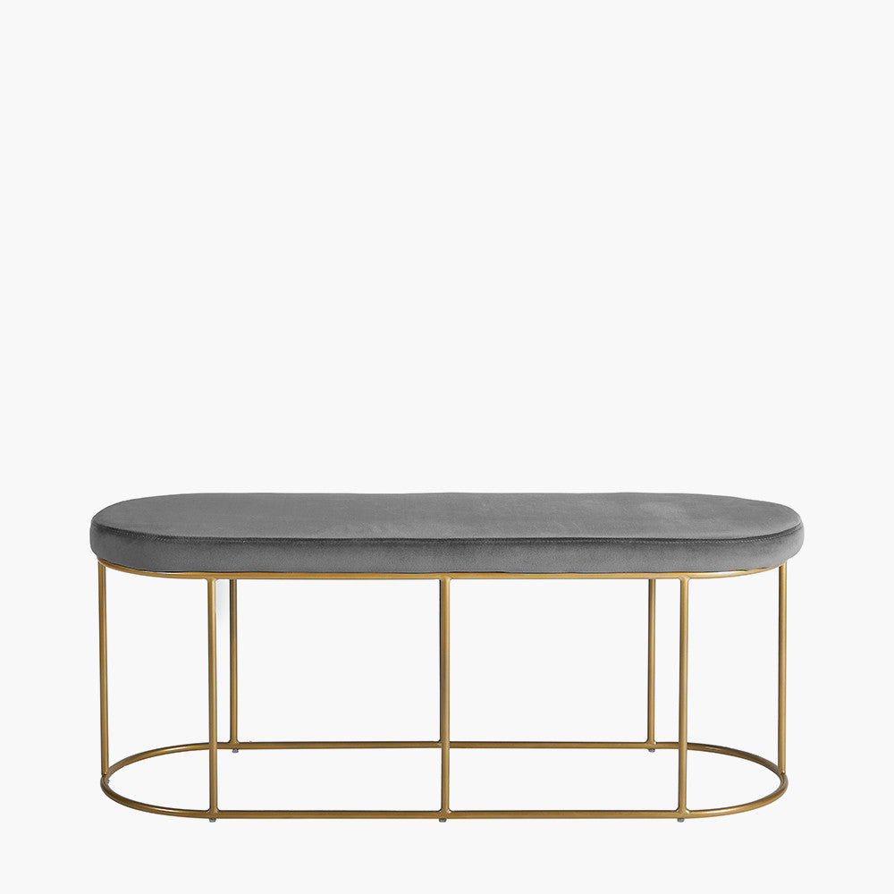 Nino Dove Grey Velvet and Gold Metal Bench