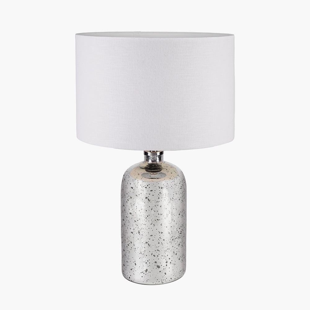 Ophelia Mercurial Glass Table Lamp Base with Lino 40cm White Self Lined Linen Cylinder Lampshade