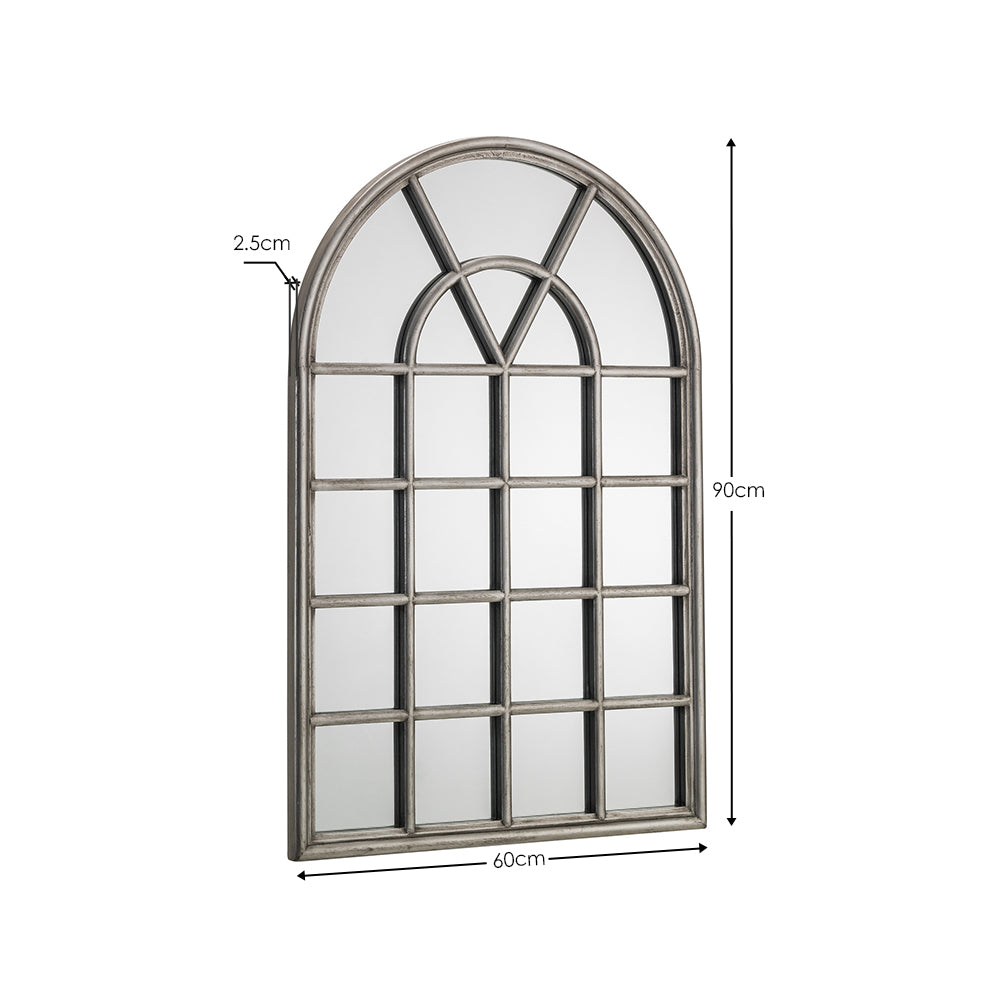 Introducing the Opus Pewter Window Mirror — an elegant arched window design inspired by Georgian classics. This piece is more than a mirror; it's a focal point of vintage charm and wall art that instantly elevates any room in your home.