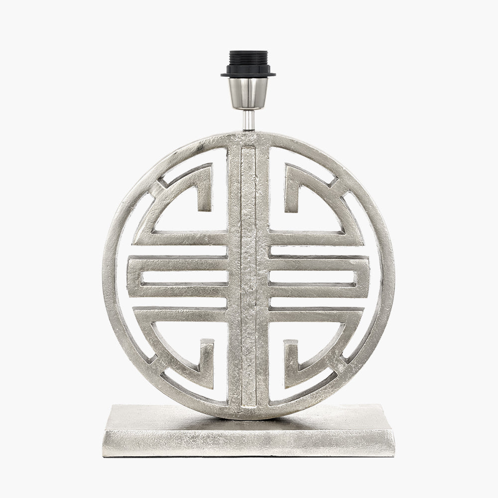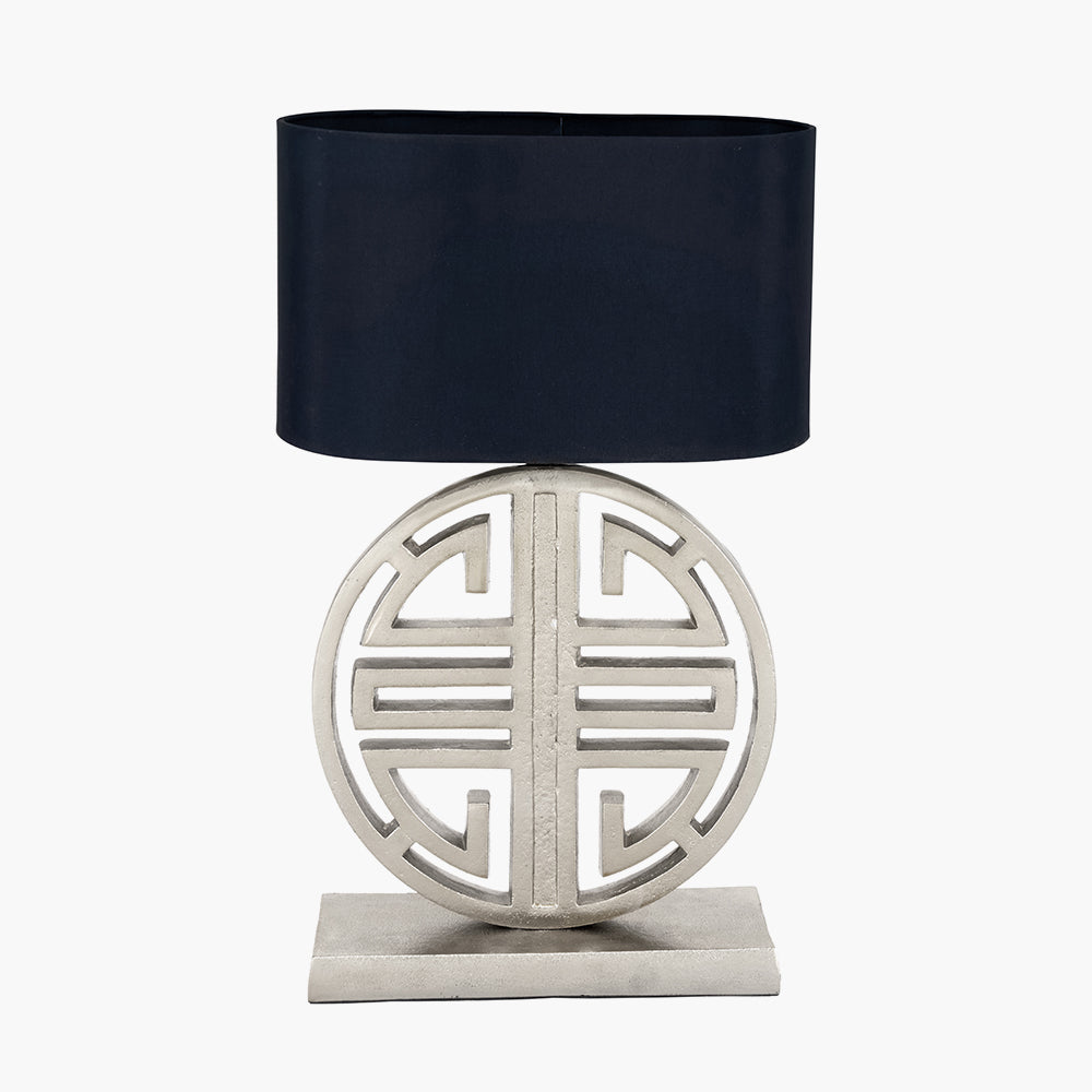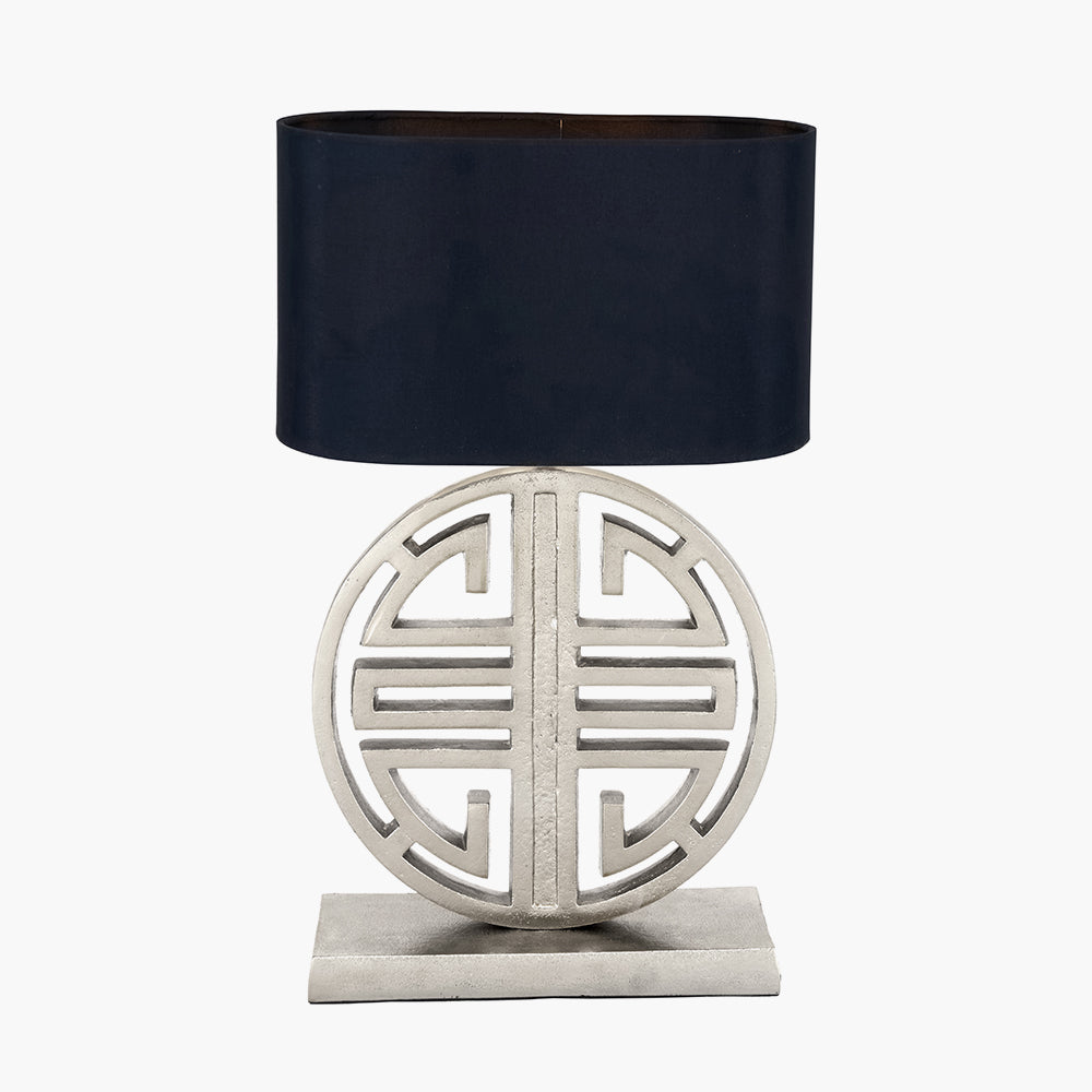 This perfectly proportioned shiny silver metal table lamp will look fabulous on its own or absolutely fabulous as a pair. Placed on a console table in your entrance hall or on a bedside table this really is a statement piece. Complete the look with a faux silk, black oval shade, this lamp is perfect for lighting any living space.