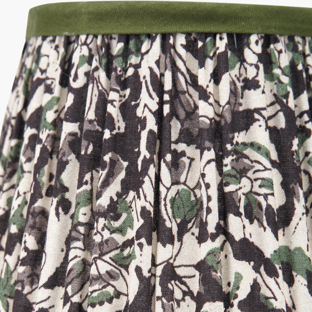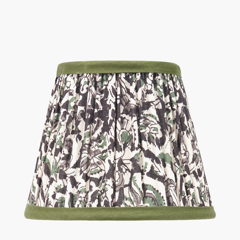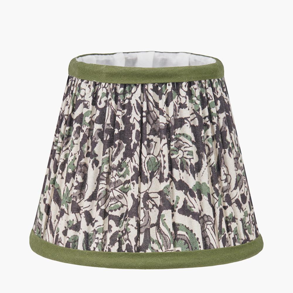 The Ornella 16cm empire lampshade features a classic mushroom pleat design crafted from high-quality cotton. Showcasing a sophisticated floral pattern in rich green hues and finished with a tonal green binding, this elegant shade brings charm and natural beauty to any space. Its striking design pairs effortlessly with a wide range of lamp bases, making it a versatile and stylish addition to both traditional and contemporary interiors.
