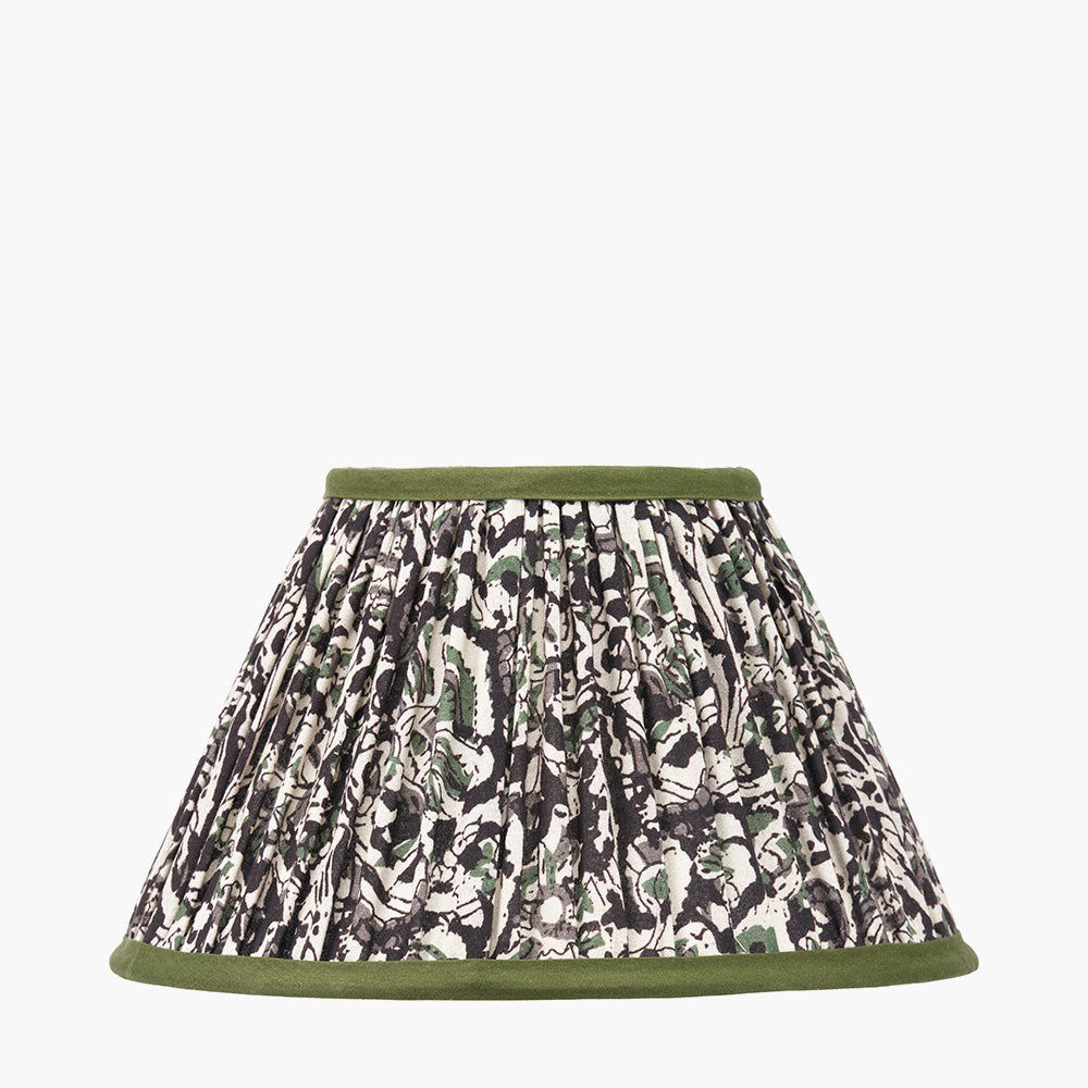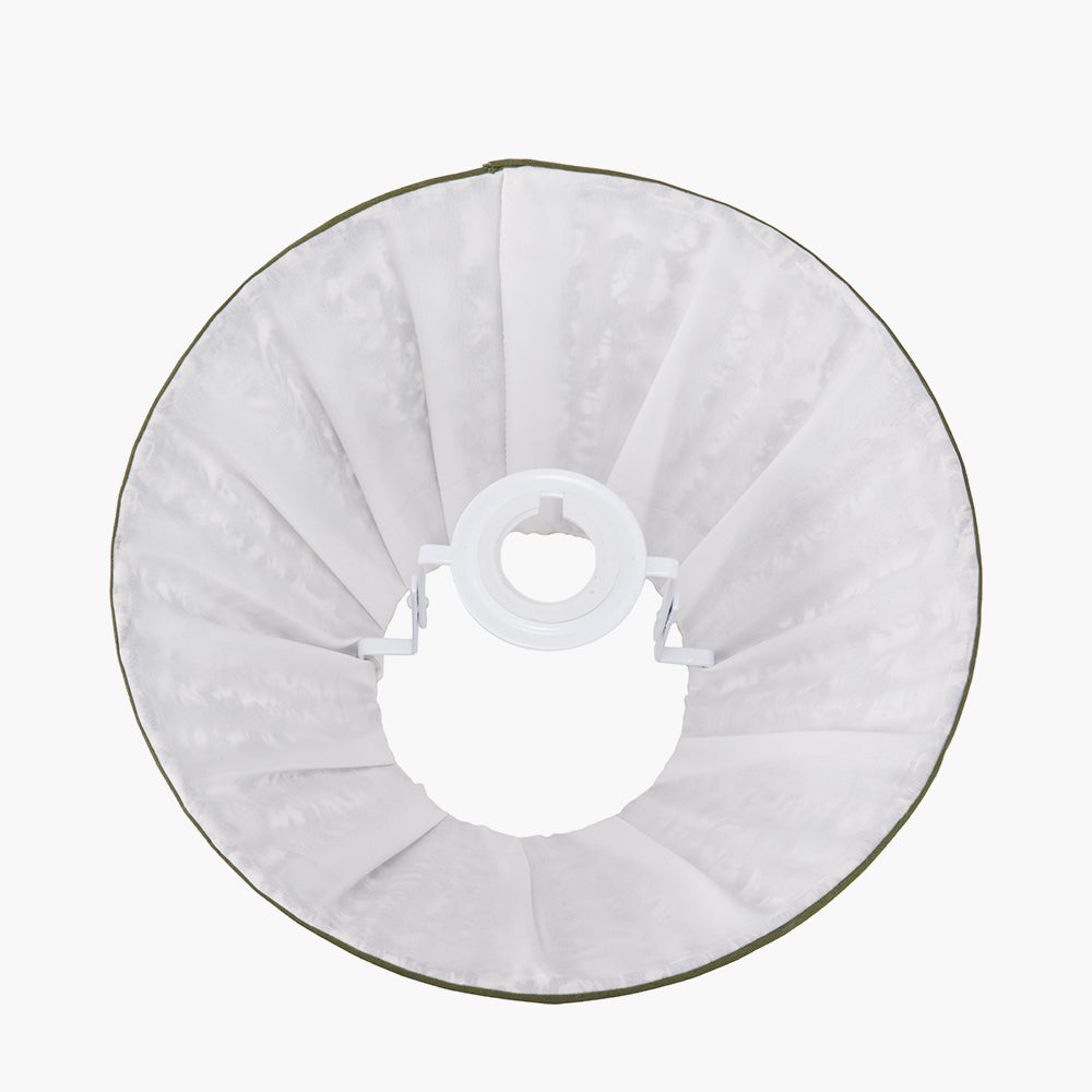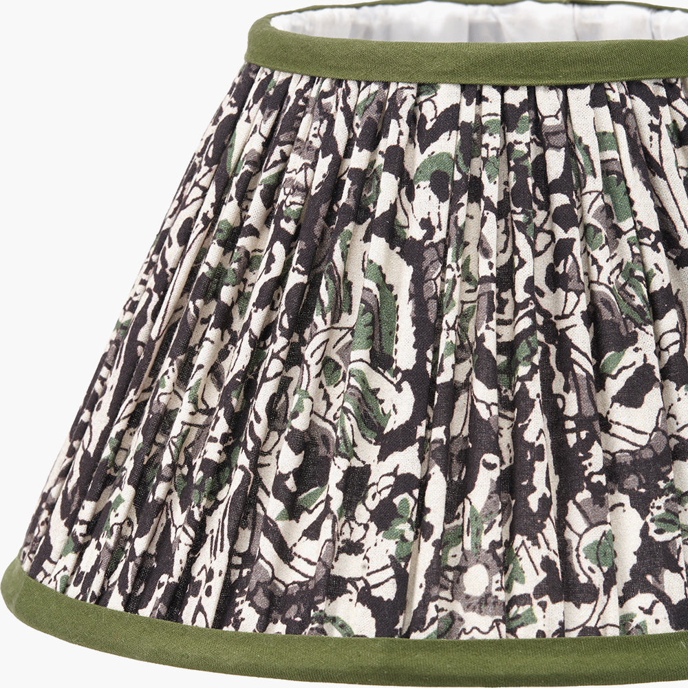 The Ornella 25cm empire lampshade features a classic mushroom pleat design crafted from high-quality cotton. Showcasing a sophisticated floral pattern in rich green hues and finished with a tonal green binding, this elegant shade brings charm and natural beauty to any space. Its striking design pairs effortlessly with a wide range of lamp bases, making it a versatile and stylish addition to both traditional and contemporary interiors.