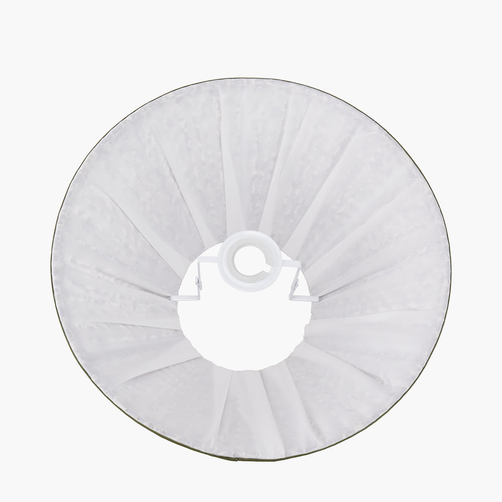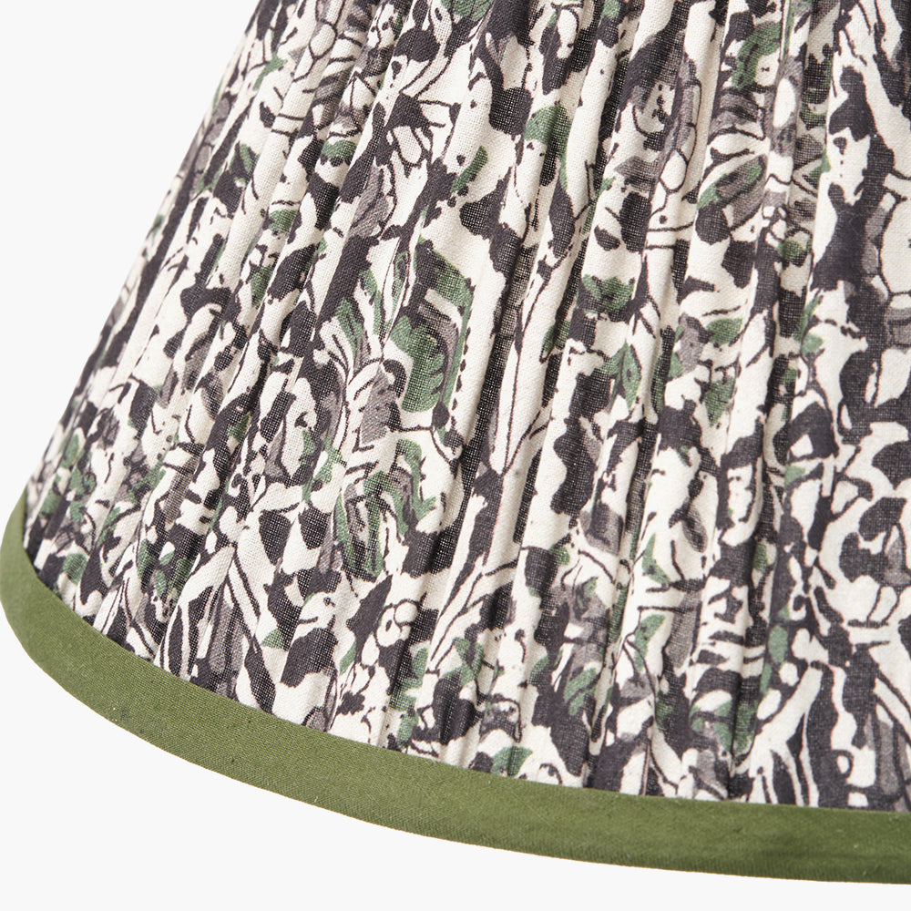 The Ornella 35cm empire lampshade features a classic mushroom pleat design crafted from high-quality cotton. Showcasing a sophisticated floral pattern in rich green hues and finished with a tonal green binding, this elegant shade brings charm and natural beauty to any space. Its striking design pairs effortlessly with a wide range of lamp bases, making it a versatile and stylish addition to both traditional and contemporary interiors. This lampshade features a reversible gimbal, allowing it to be used with either a table or floor lamp base, or reversed for use as a ceiling pendant.