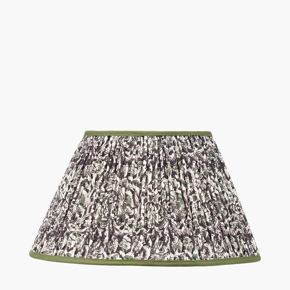 The Ornella 45cm empire lampshade features a classic mushroom pleat design crafted from high-quality cotton. Showcasing a sophisticated floral pattern in rich green hues and finished with a tonal green binding, this elegant shade brings charm and natural beauty to any space. Its striking design pairs effortlessly with a wide range of lamp bases, making it a versatile and stylish addition to both traditional and contemporary interiors. This lampshade features a reversible gimbal, allowing it to be used with either a table or floor lamp base, or reversed for use as a ceiling pendant.