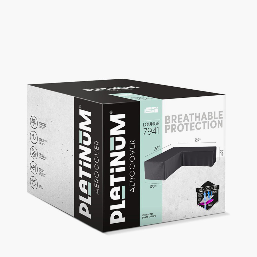 Lounge set Aerocover for L-shape lounge sets. The cover is water-resistant and provides UV protection as well as including a handy storage bag. This cover is perfect for protecting your outdoor furniture to keep clean and dry when not in use or during bad weather. This cover is compatible with large corner sets.