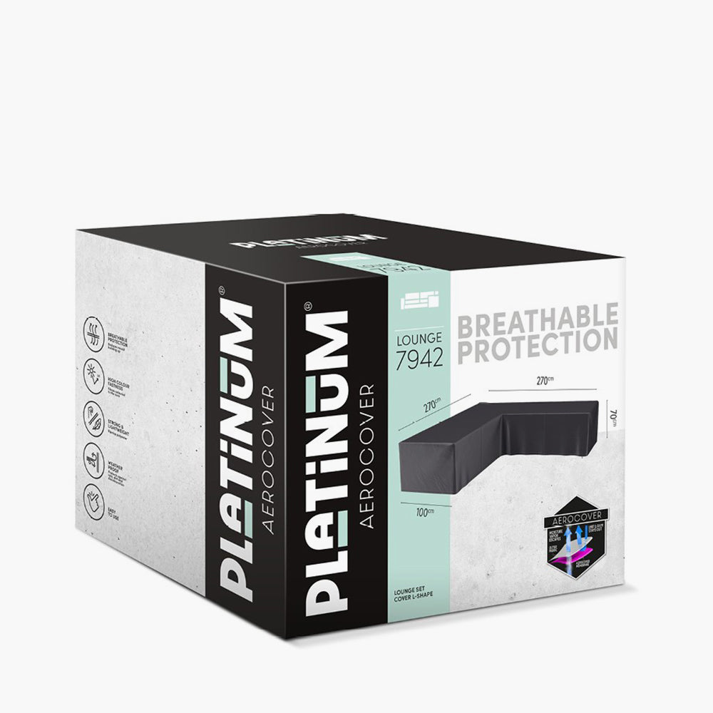 Lounge set Aerocover for L-shape lounge sets. The cover is water-resistant and provides UV protection as well as including a handy storage bag.This cover is perfect for protecting your outdoor furniture to keep clean and dry when not in use or during bad weather. This cover is compatible with large corner sets.