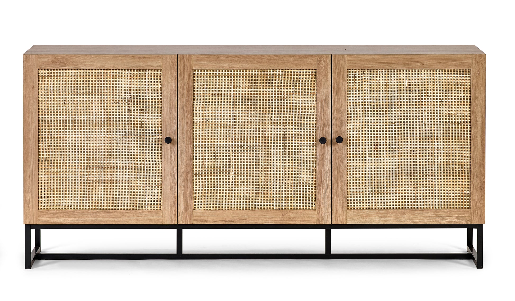 Fusing modern construction with retro design elements, the Padstow collection will exquisitely complement any styled home. The natural rattan fronts and industrial-style base collaborate perfectly to leave a warm yet chic aesthetic in your home. This range includes a bedside, 3 drawer chest, 6 drawer chest, wardrobe, coffee table, TV unit, sideboard, and tall bookcase. Also available in a black finish.