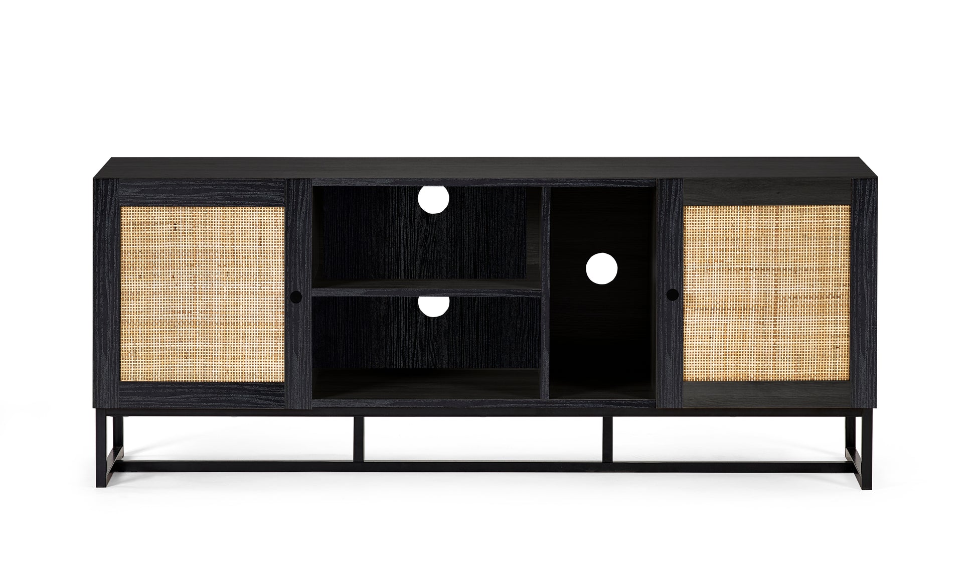Fusing modern construction with retro design elements, the Padstow collection will exquisitely complement any styled home. The natural rattan fronts and industrial-style base collaborate perfectly to leave a warm yet chic aesthetic in your home. This range includes a bedside, 3 drawer chest, 6 drawer chest, wardrobe, coffee table, TV unit, sideboard, and tall bookcase. Also available in an oak finish.