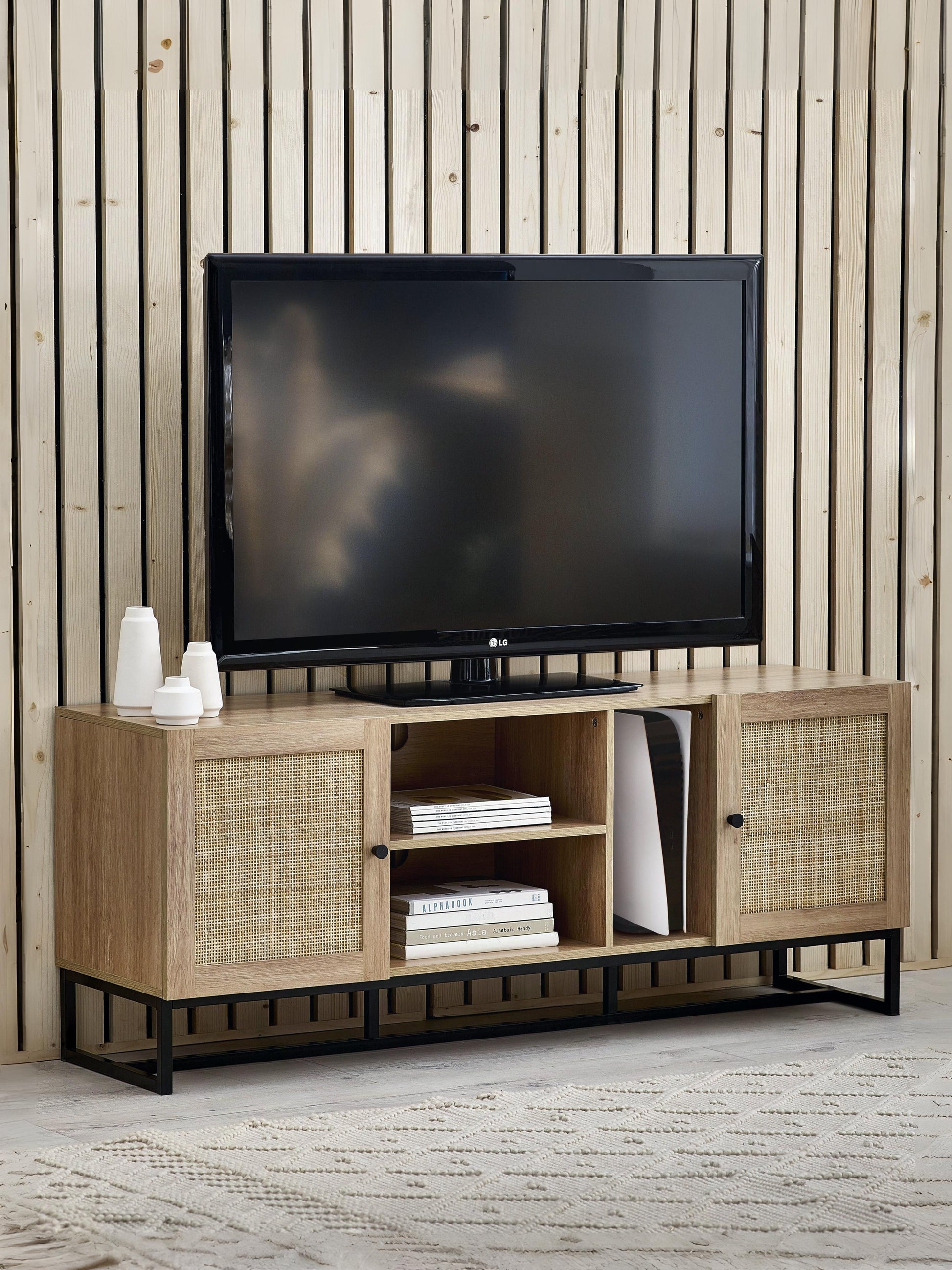 Fusing modern construction with retro design elements, the Padstow collection will exquisitely complement any styled home. The natural rattan fronts and industrial-style base collaborate perfectly to leave a warm yet chic aesthetic in your home. This range includes a bedside, 3 drawer chest, 6 drawer chest, wardrobe, coffee table, TV unit, sideboard, and tall bookcase. Also available in a black finish.