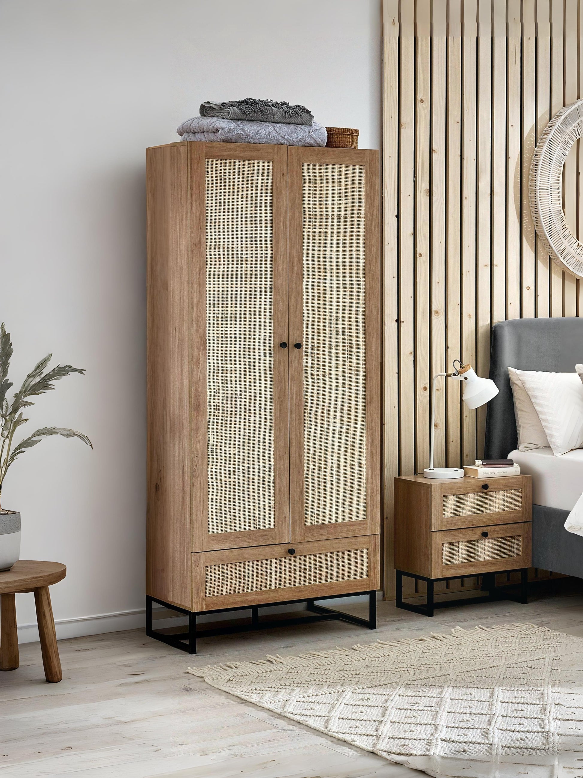 Fusing modern construction with retro design elements, the Padstow collection will exquisitely complement any styled home. The natural rattan fronts and industrial-style base collaborate perfectly to leave a warm yet chic aesthetic in your home. This range includes a bedside, 3 drawer chest, 6 drawer chest, wardrobe, coffee table, TV unit, sideboard, and tall bookcase. Also available in a black finish.
