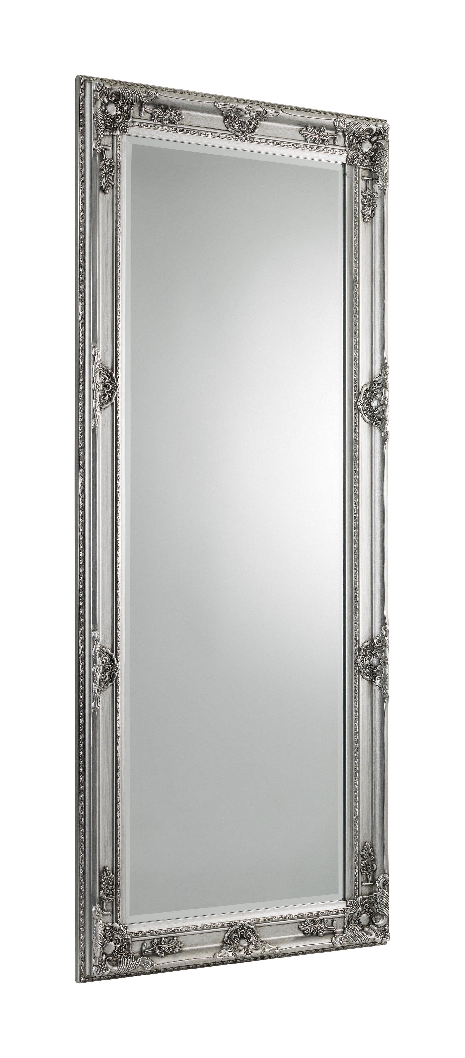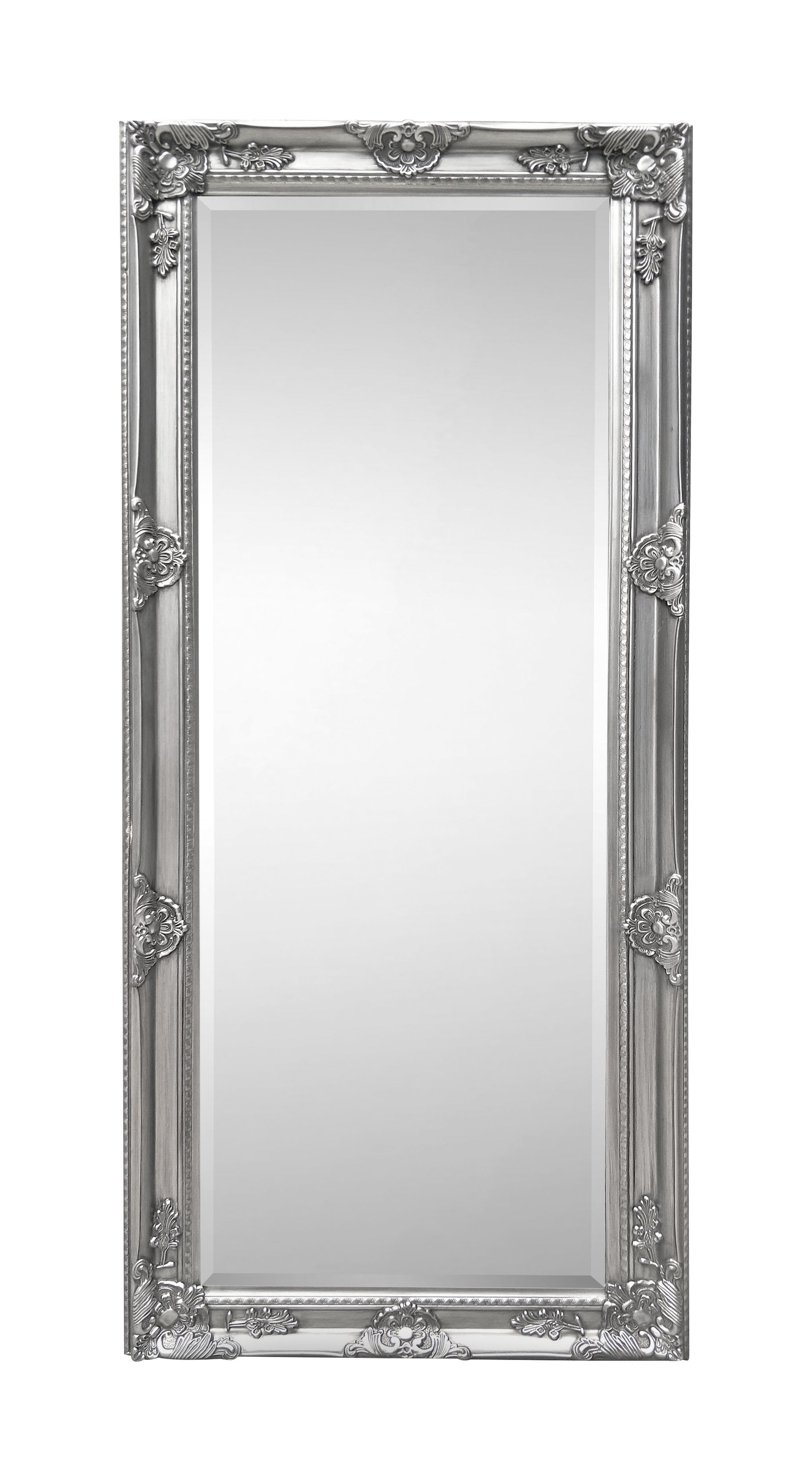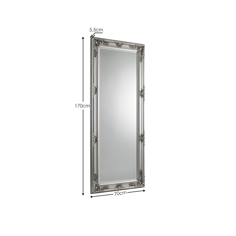 Elevate your space with the Palais Lean-To Dress Mirror in pewter grey, where baroque-inspired detailing meets an antique finish to create a timeless focal point in any room.