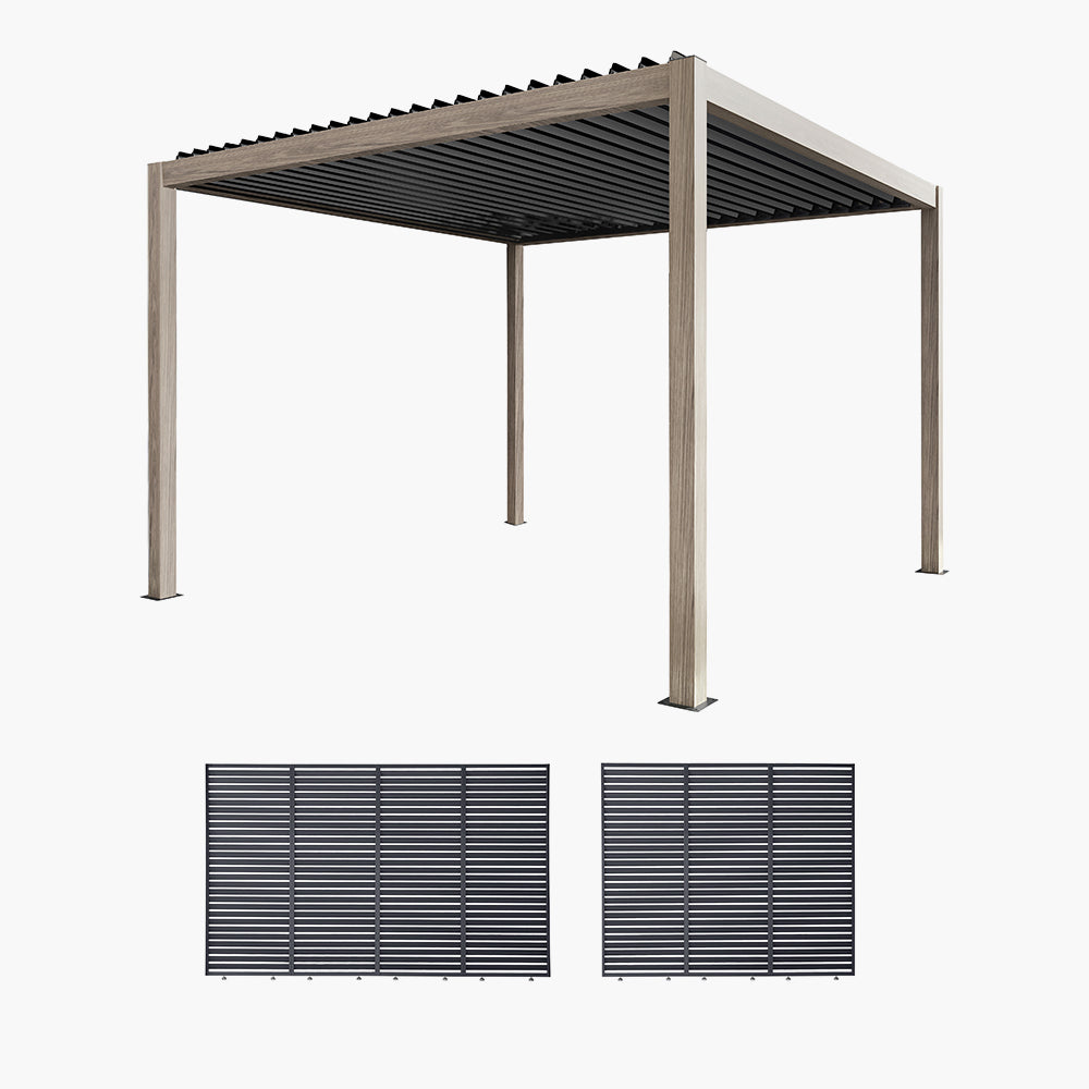 Transform your outdoor space with the Pavillo Teak 3.5m x 3.5m Pergola. This weather-ready structure blends a waterproof roof with a powder-coated aluminium frame finished in a natural teak wood effect, delivering a warm, inviting look while staying durable in all seasons.