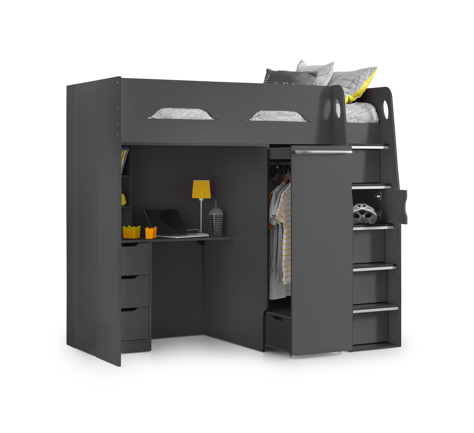Meet the Pegasus High Sleeper in Anthracite — the ultimate upgrade for kids and teenagers who want more from their bedroom. This space-saving loft pairs a comfy sleeping zone with a study-friendly workspace, all wrapped in a sleek anthracite finish with silver-grey accents.