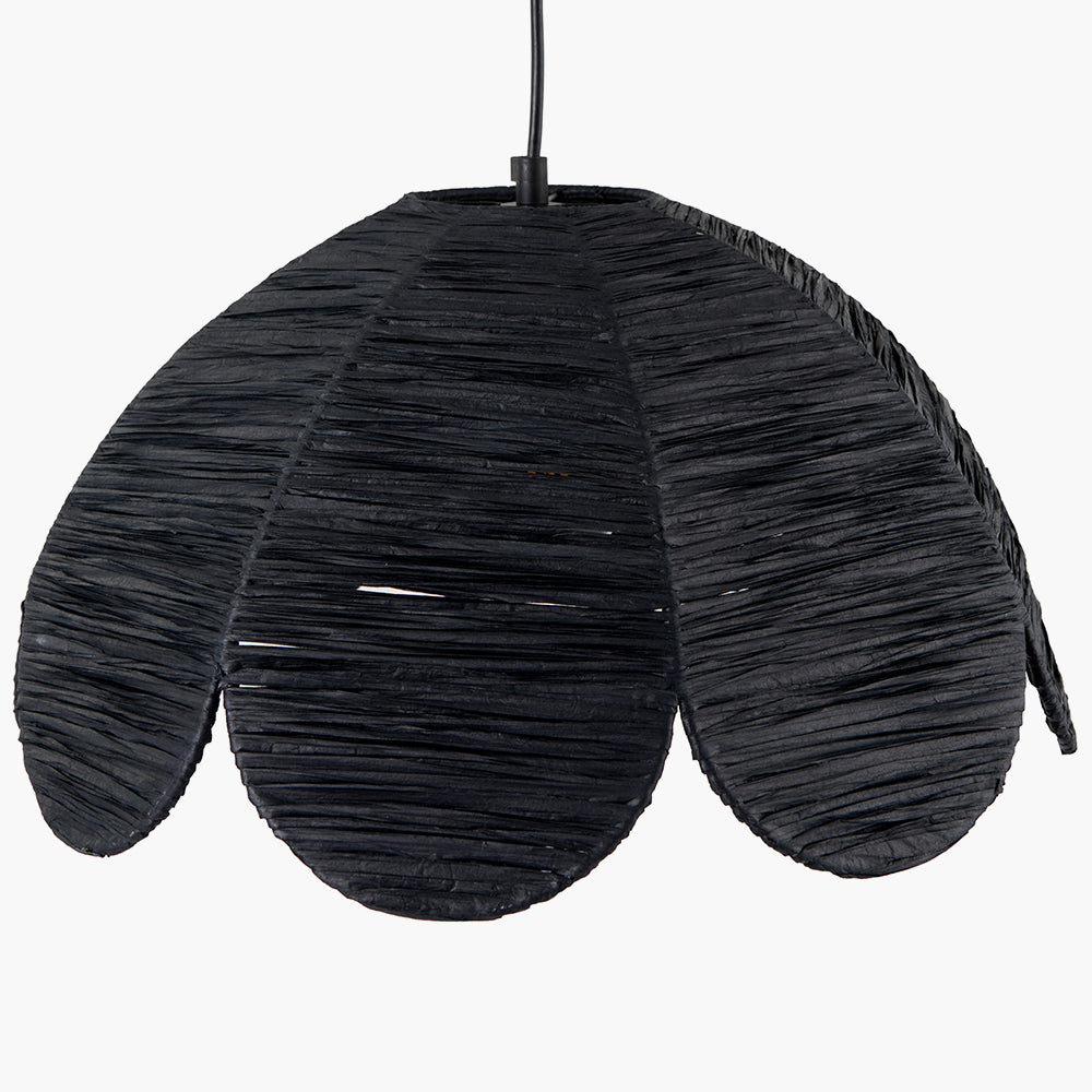 Illuminate Your Space with the Petal Scalloped Black Raffia Pendant