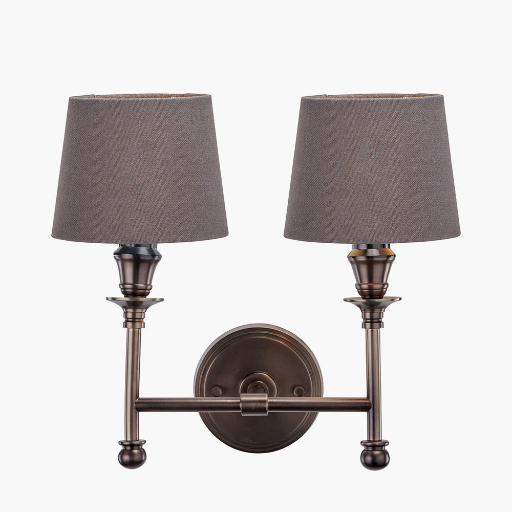 Designed to make a statement, the dual wall light provides balanced illumination and pairs beautifully with the Pelham 15cm Grey Handloom Tapered Candle Clip Lampshades for a coordinated, contemporary look.