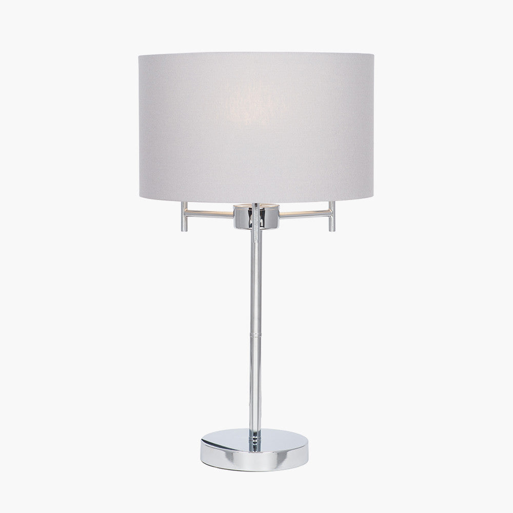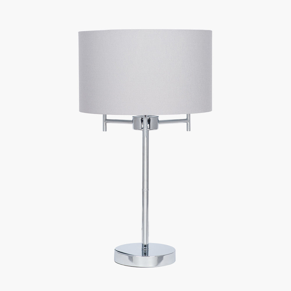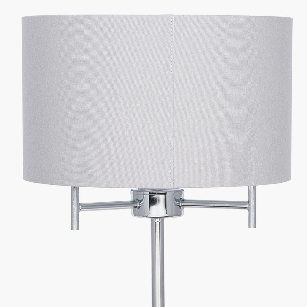 Crafted with a sturdy metal base and finished in a stunning silver hue, this table lamp is not just a source of light but a statement piece. The elegant grey shade softens the glow, creating a warm and inviting atmosphere, ideal for reading, entertaining, or relaxing.