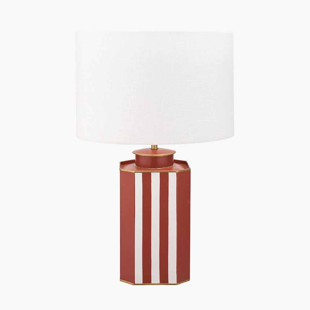 Raya Cinnamon and White Hand Painted Metal Table Lamp Base with Lino 40cm White Self Lined Linen Cylinder Lampshade