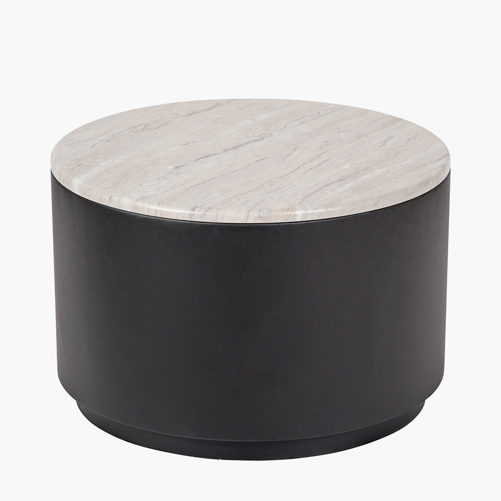 The Remy White Marble Effect and Black Metal Storage Coffee Table blends a white marble effect tabletop with a bold black curved metal base for a contemporary statement piece in any living space.