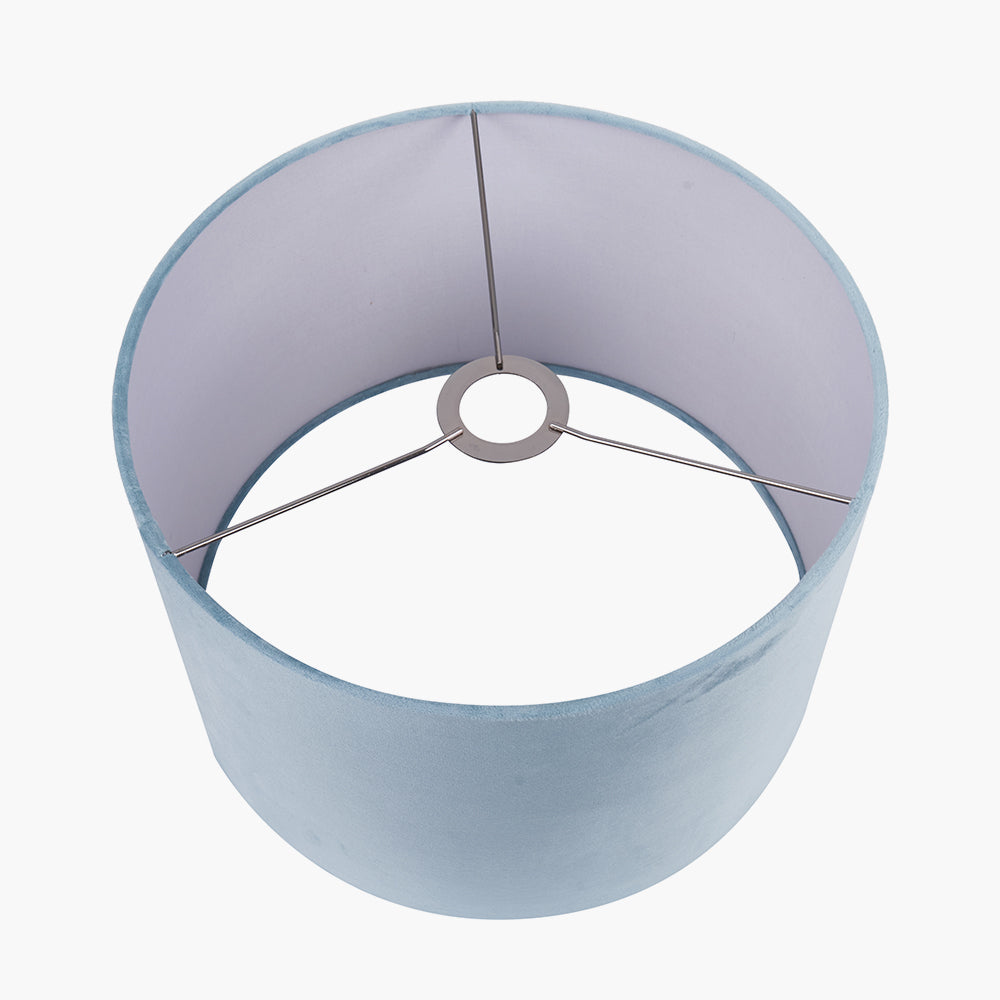 The 45cm Rene velvet cylinder shade is finished in a sumptuous duck egg velvet with a matching colour cotton mix lining. The delicate tone of this shade will be the perfect fit to any ceiling or lampbase.
