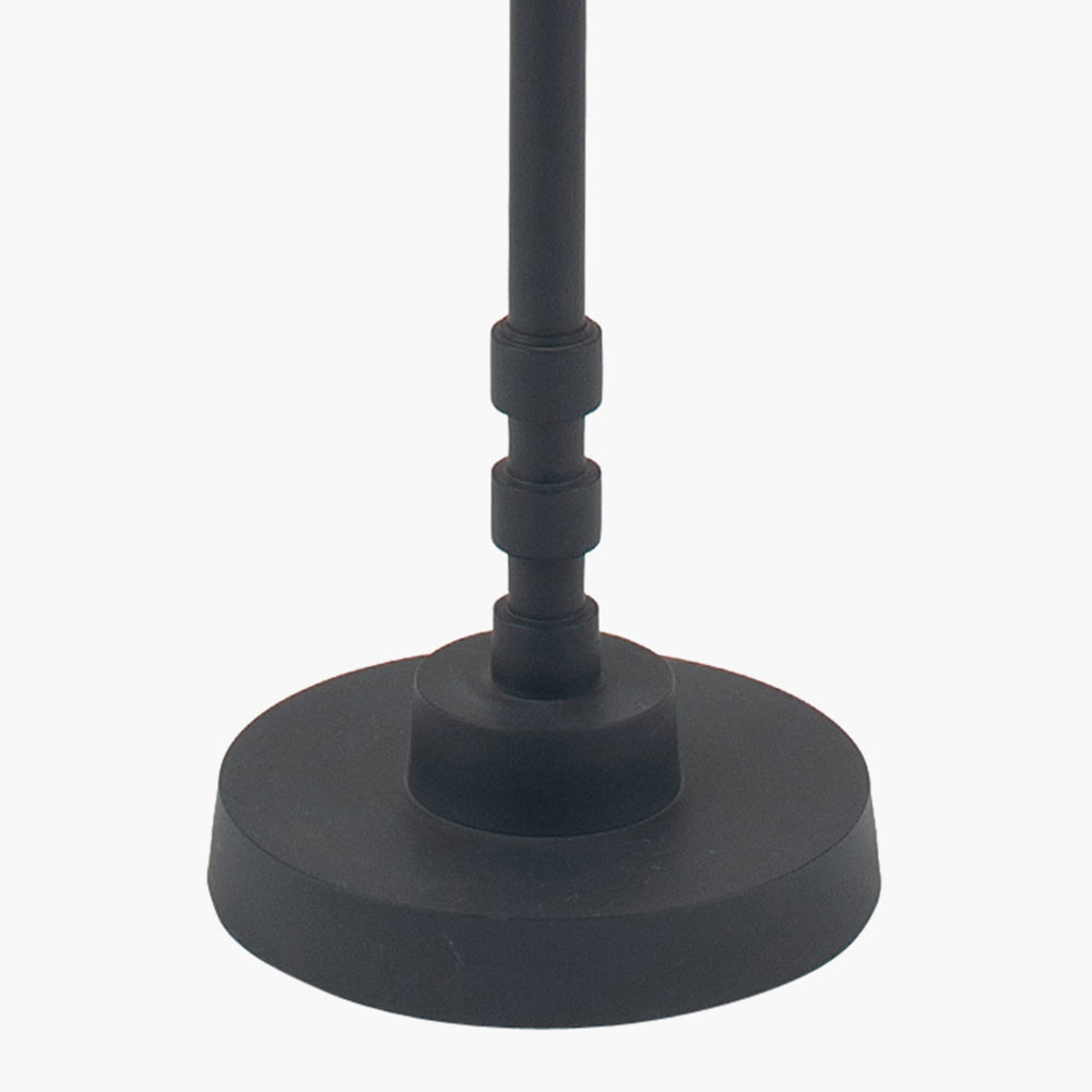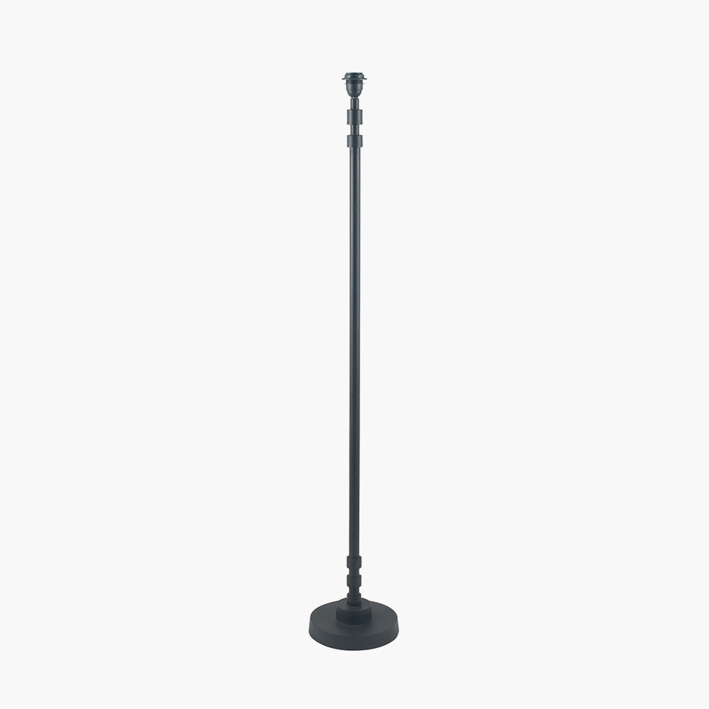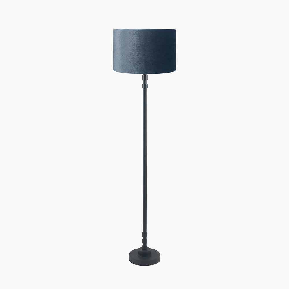 A simple yet elegant metal floor lamp base with a modern deep stepped foot finished here in a contemporary matt black. The floor lamp is paired with a fabulous velvet shade, in a rich slate colour, with a contrasting metallic bronze card inner for added luxury.