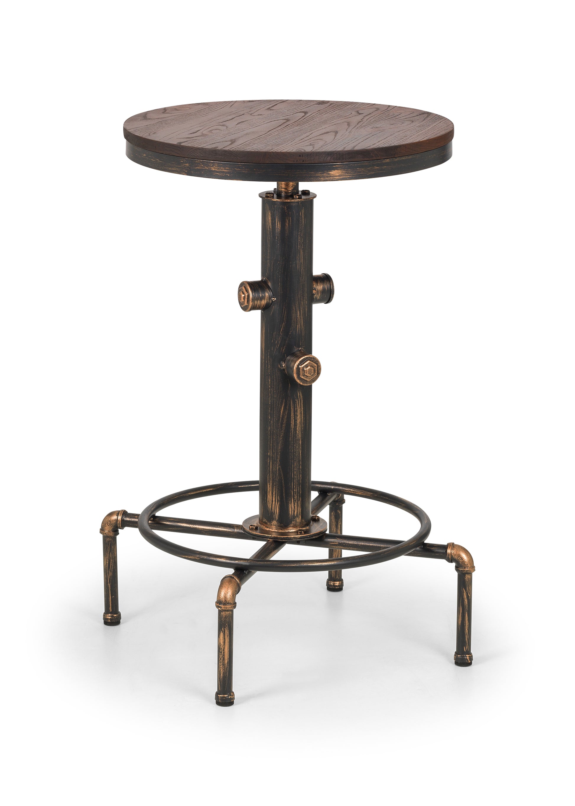 Offering a unique vintage style, the Rockport bar table is finished in a brushed copper effect with a rustic elm round tabletop. Showcasing a fire hydrant design, the frame has realistic features such as water valves and four water pipe style legs. Along with a circular footrest for added comfort. Pair up with the Rockport Bar Stool to create a perfect eye-catching centrepiece for any home.