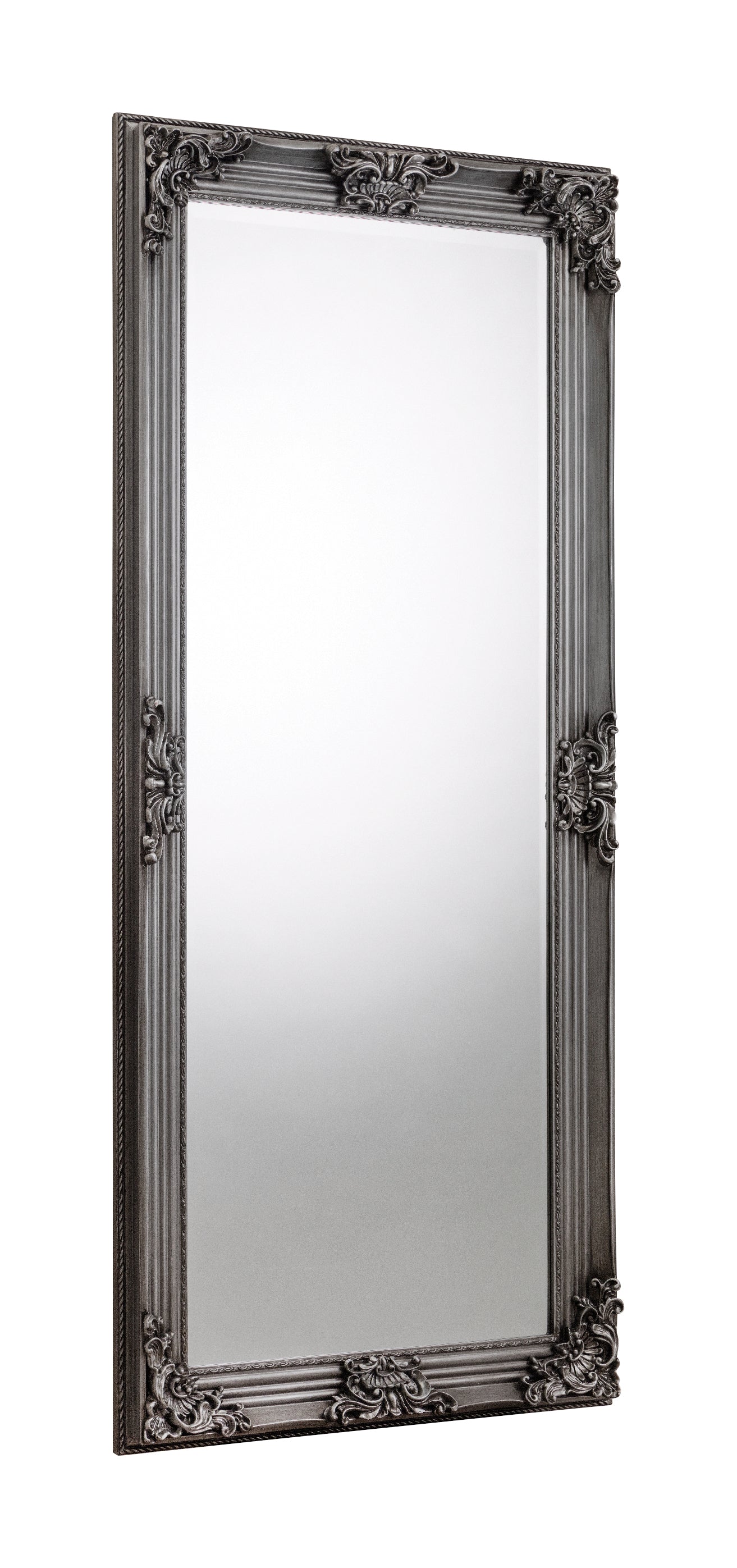Perfect as a dressing mirror, a statement piece in a hallway, or a brightener for bedrooms and dressing rooms, the pewter finish and sculpted resin moulding capture a refined Rococo silhouette while staying versatile for modern interiors. Experience added light, a sense of depth, and undeniable elegance with this timeless leaning mirror.
