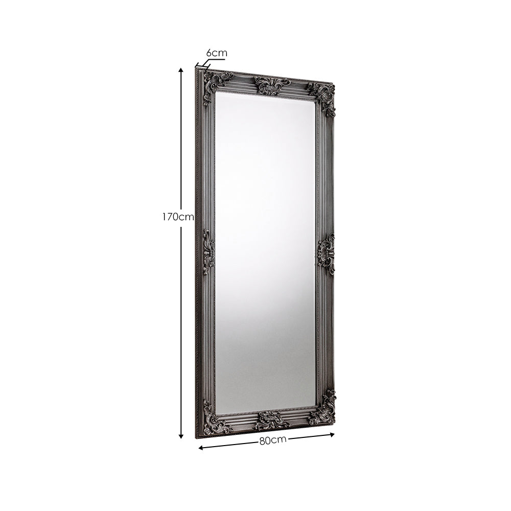 Elevate your space with the Rococo Pewter Lean-To Dress Mirror—where classic Rococo charm meets modern practicality. This contemporary interpretation preserves the elegance of ornate mirrors while delivering clean lines that suit a wide range of décor.