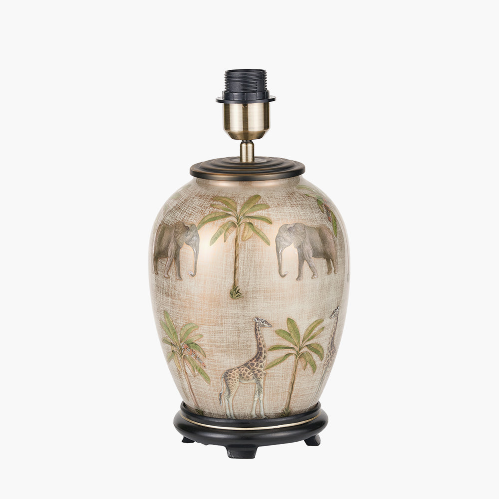 Ideal on a living room side table, console, or home office desk, the Safari lamp delivers balanced lighting that enhances ambiance while supporting everyday use. Elevate your décor with a piece that fuses glass, linen, and refined aesthetics.