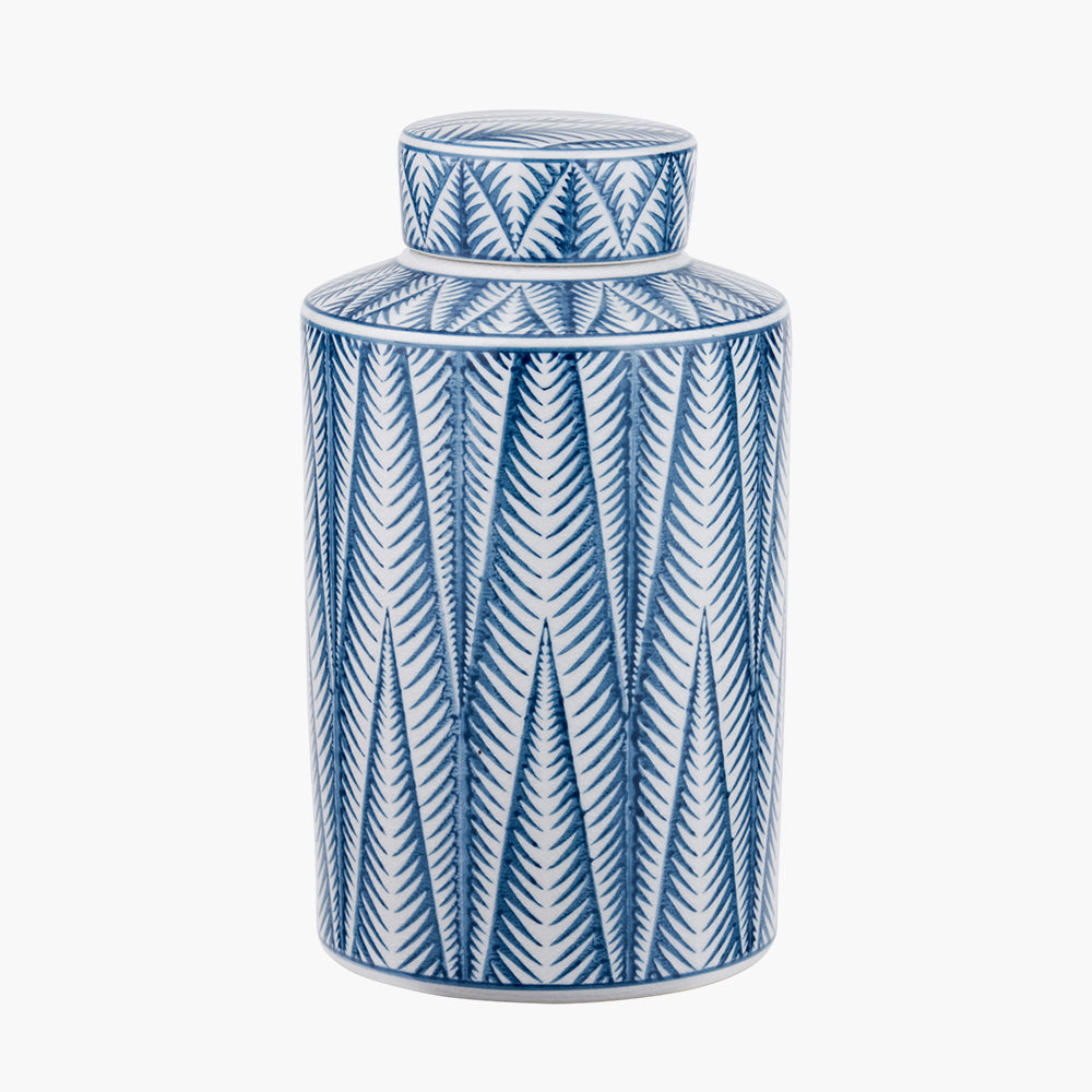 Enhance your home with the Samara Blue and White Ceramic Aztec Design Lidded Ginger Jar and experience the blend of style and practicality. Don't miss out on adding this versatile piece to your collection—order yours today!