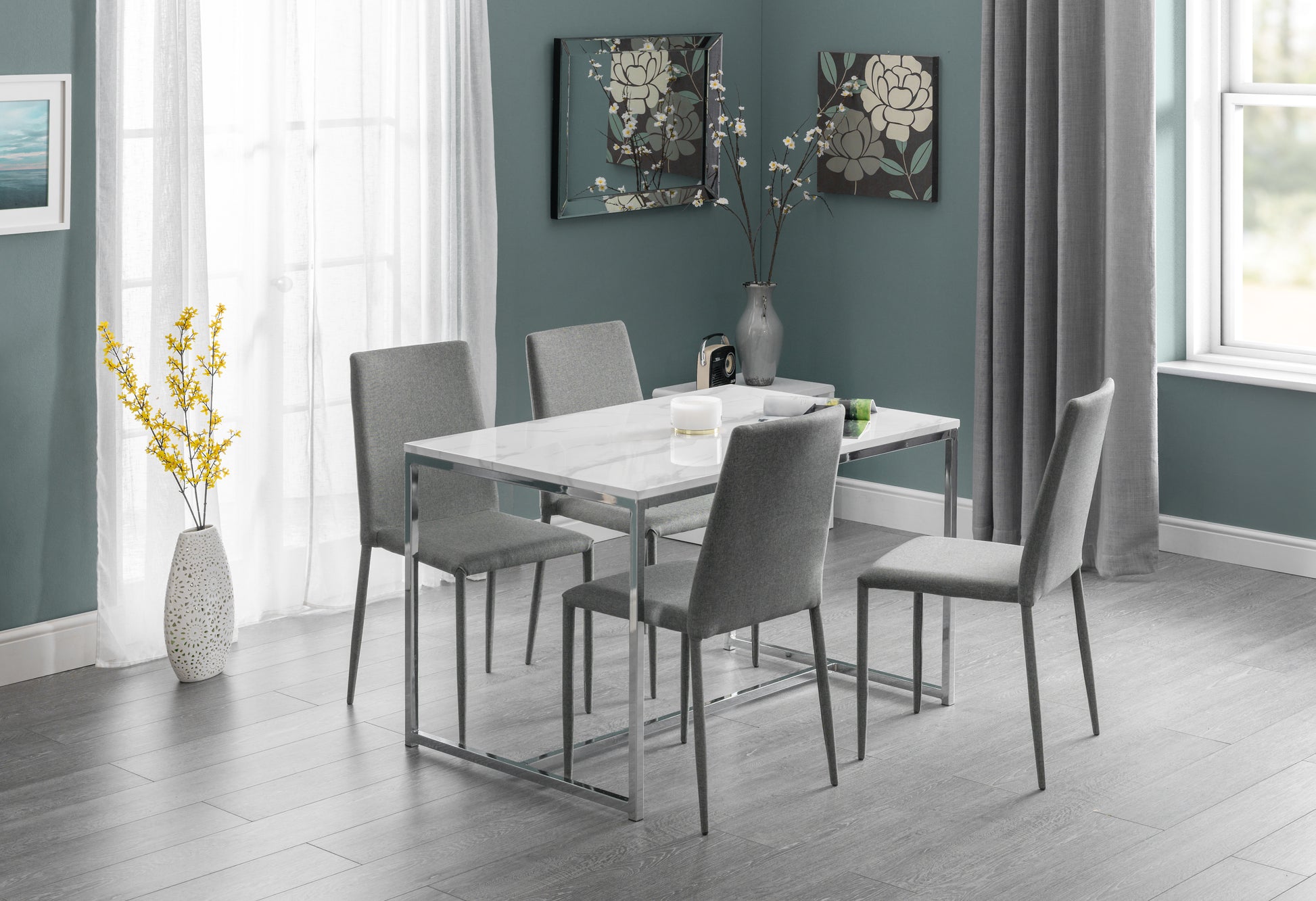 Scala is a sleek dining table with chic marble effect top on a well-crafted stainless steel frame. It has a timeless Italian design that fits well with a wide range of decorative styles. Part of the Julian Bowen Scala Dining and Occasional furniture range.