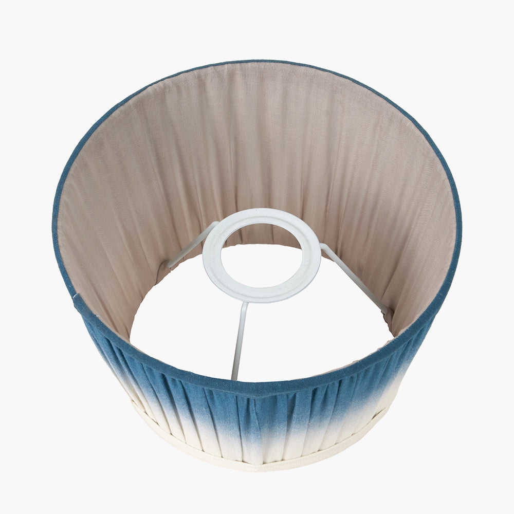 Our on trend blue ombre shade is the definition of style. The hand mushroom pleated shade will add a depth and texture to your interior and will look fantastic on a multitude of lamp bases. The 35cm shade is in a tapered profile and creates a modern and clean look with pop of colour. Some larger shades within this range feature a reversible gimbal, suitable for table, floor, or ceiling use. Contact our Customer Support Team to confirm sizing and availability