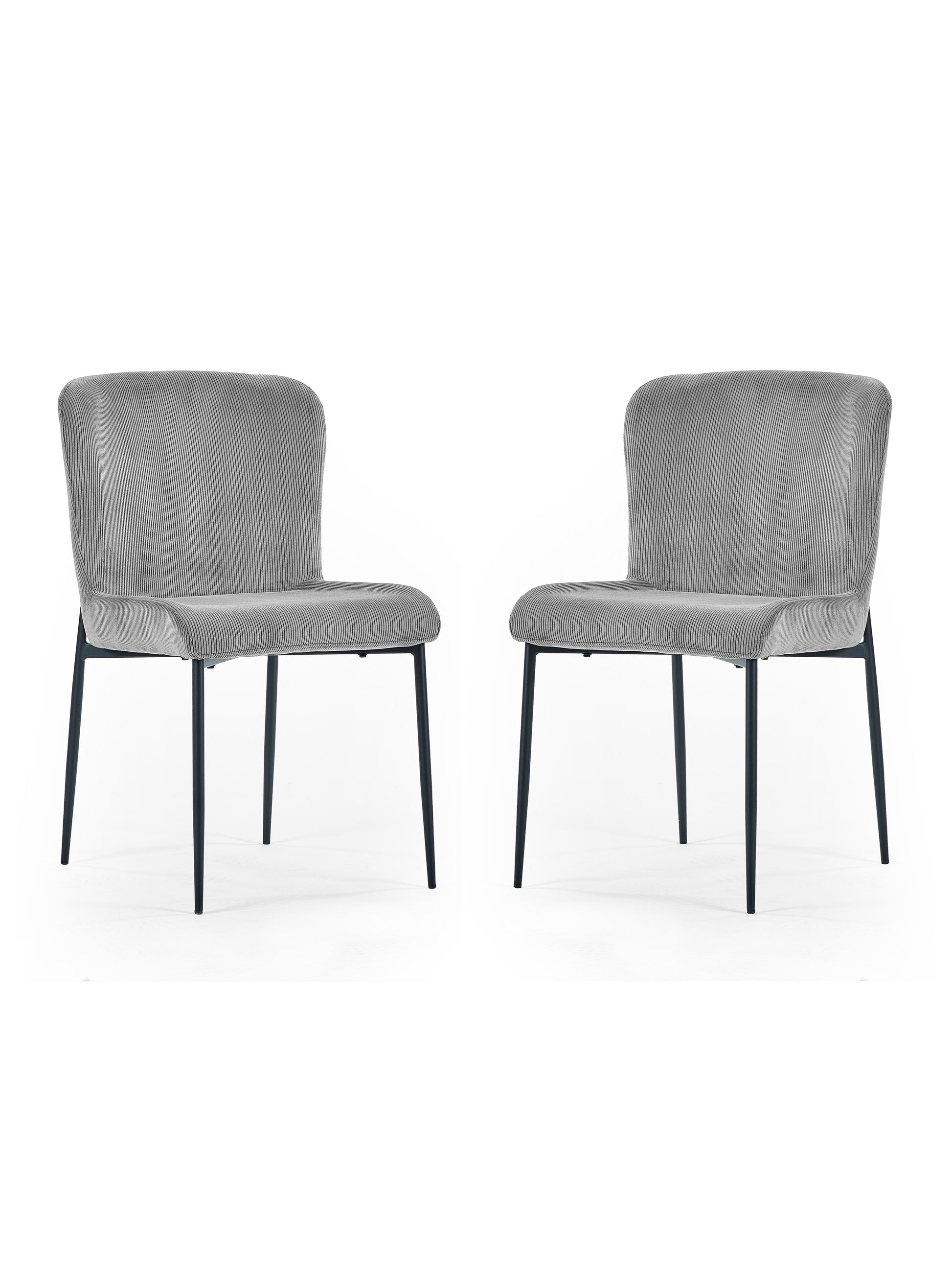 With a high-back design and rounded contours, these chairs offer superior comfort without sacrificing style. The slim black coated metal legs add a sleek, modern touch and sturdy stability, ensuring durability for everyday meals and entertaining.