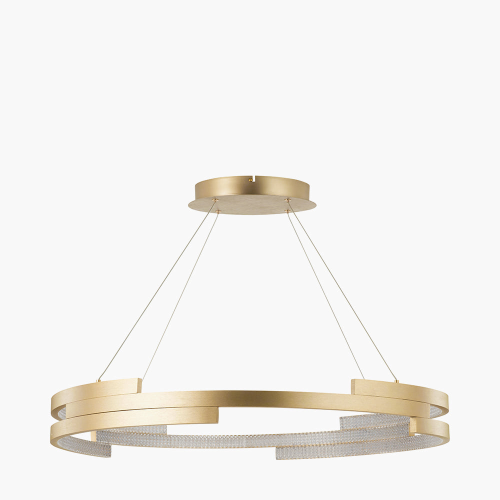 Illuminate your space with the stunning Sienna Gold Metal LED Ring Pendant, a perfect blend of modern elegance and functionality. This exquisite pendant light is designed to be the centerpiece of any room, exuding sophistication and style with its soft gold finish.