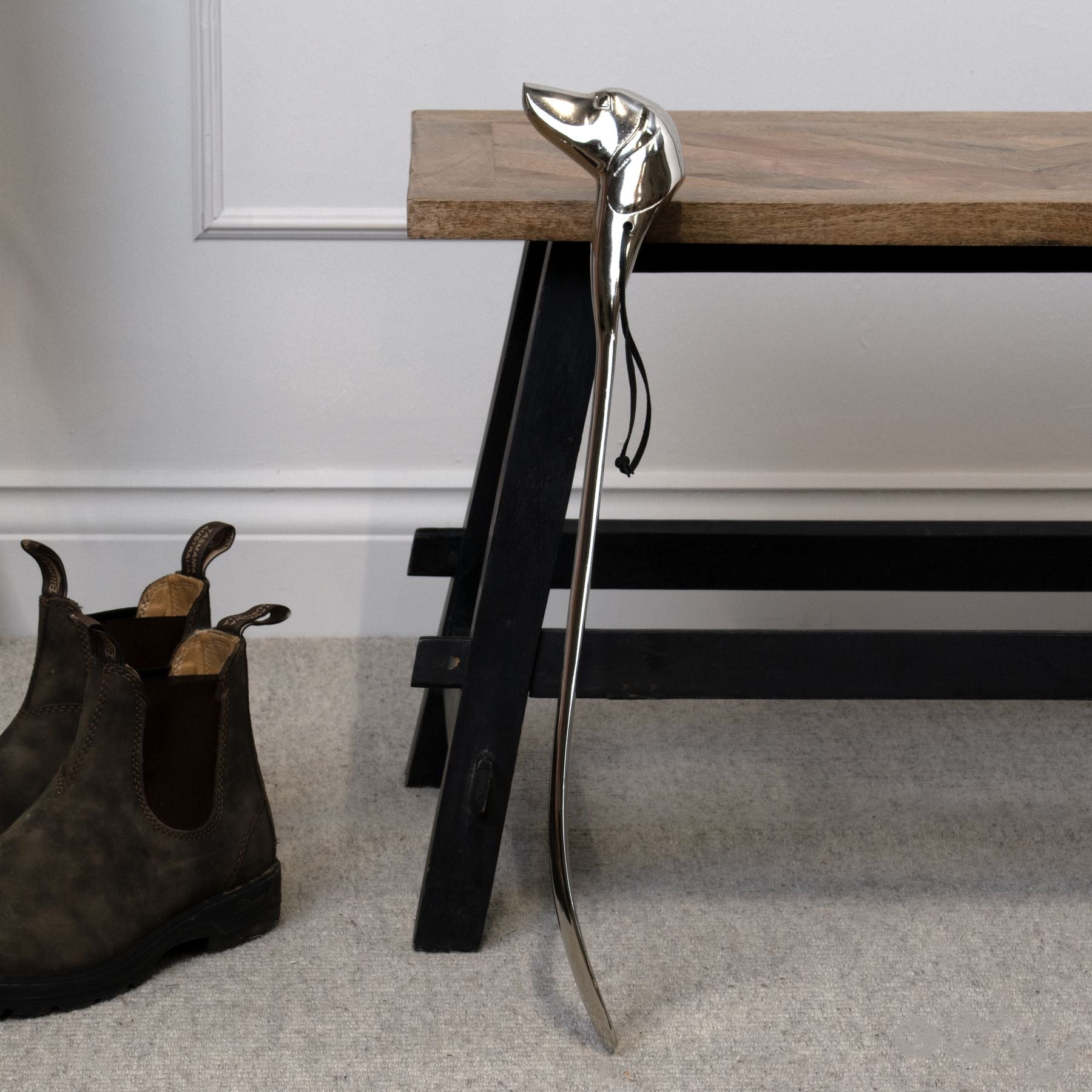 Elevate your entryway with the Silver Nickel Dog Head Detail Shoe Horn, a perfect blend of functionality and elegance. This unique shoe horn not only assists you in slipping on your footwear effortlessly but also adds a touch of sophistication to your home décor.