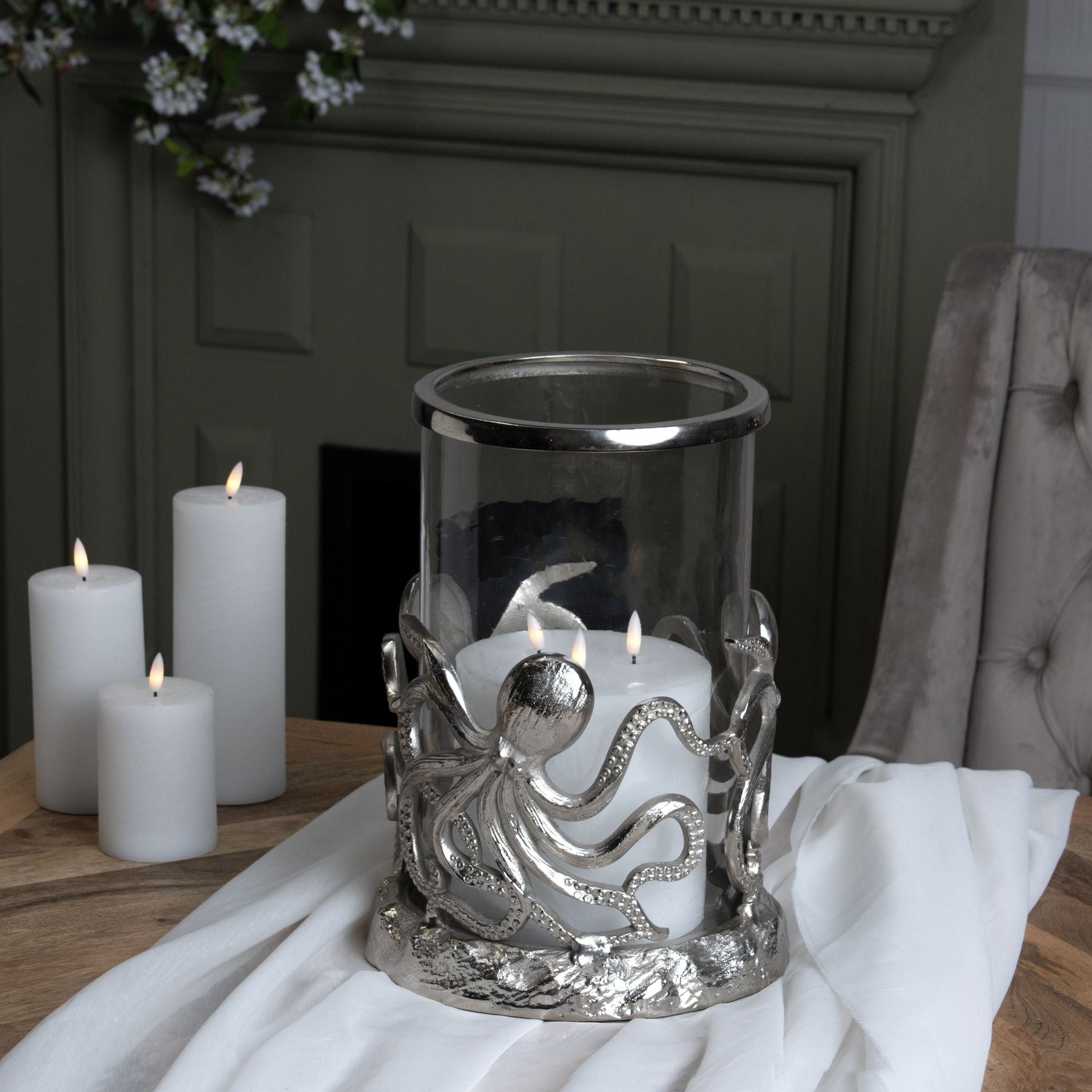 Enchanting Silver Octopus Candle Hurricane Lantern