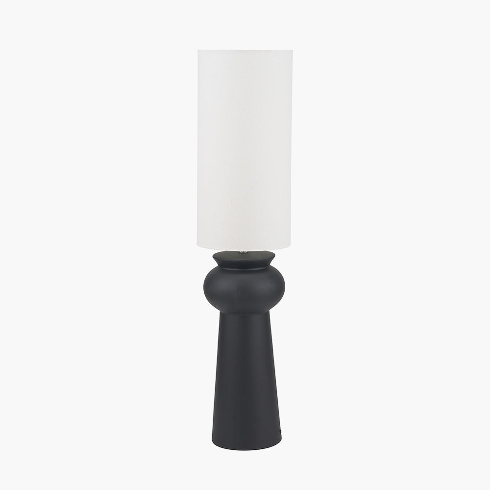 Elevate your living space with our exquisite Sloane ceramic floor lamp. Its sleek black ceramic base and elegant white cotton effect shade add a touch of contemporary sophistication to any room. Perfect for illuminating your entrance hall, living room or bedroom, this modern monochrome floor lamp is guaranteed to add style to your home.