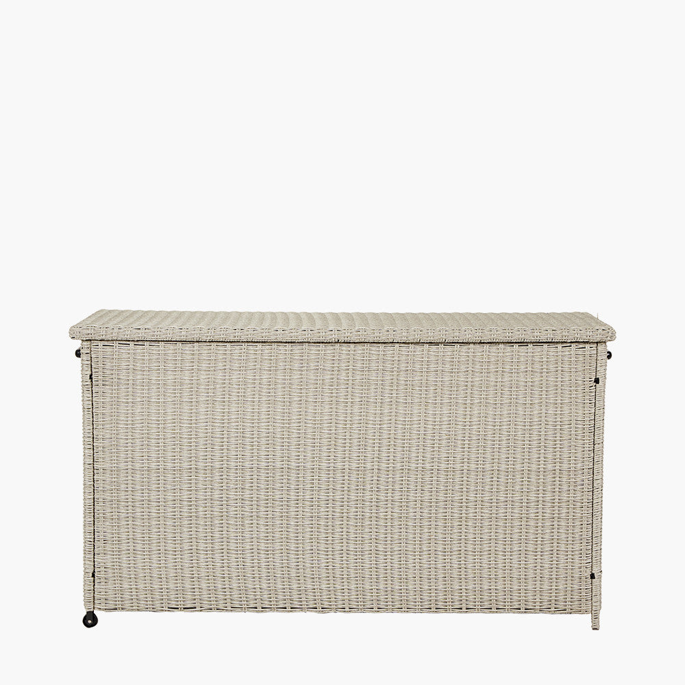 Our Stone Grey Large Cushion Box is made from a 6mm gauge, half-round, Synthetic Rattan Weave around a powder coated metal frame. Not only is it substantial in size and will happily store your cushions whilst not in use, it is smartly designed to coordinate seamlessly with your outdoor furniture set.
