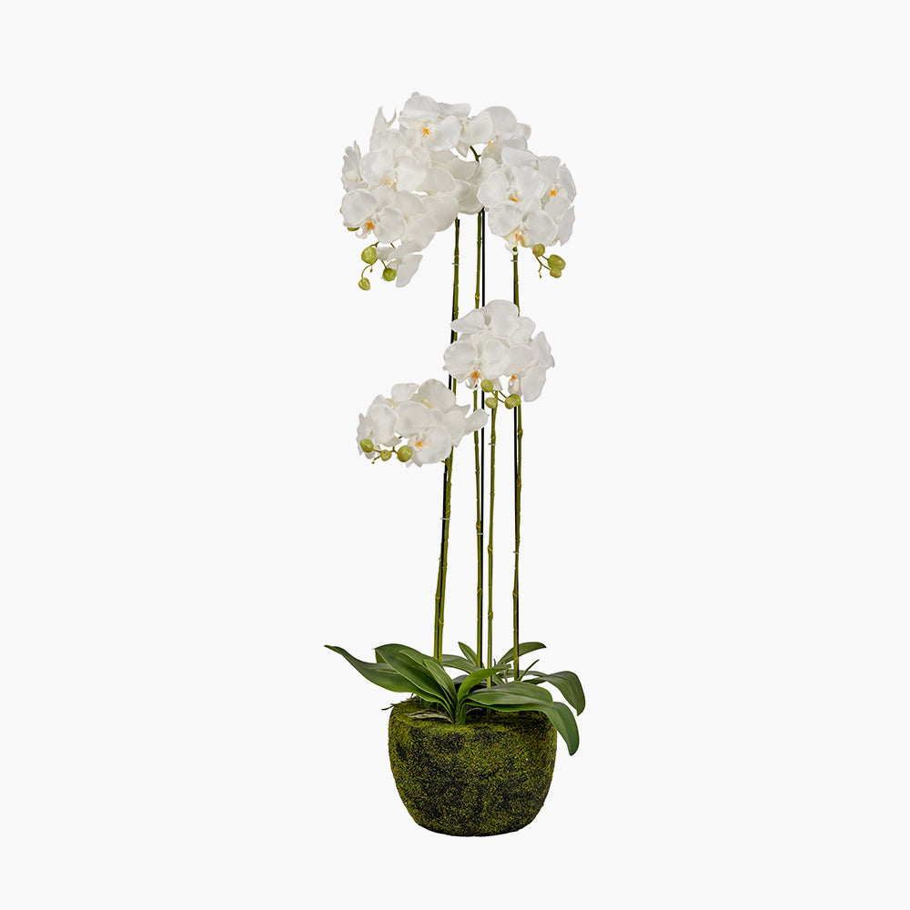 Tall White Orchid in Moss Pot - A Touch of Elegance for Your Home