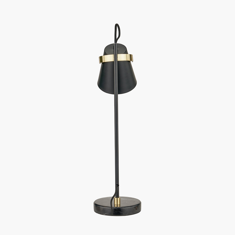 Elevate your interior decor with the Theia Black and Brushed Brass Task Table Lamp, a perfect blend of functionality and style. This exquisite lamp features a sleek black metal finish paired with elegant brushed brass accents, making it an eye-catching addition to any room.