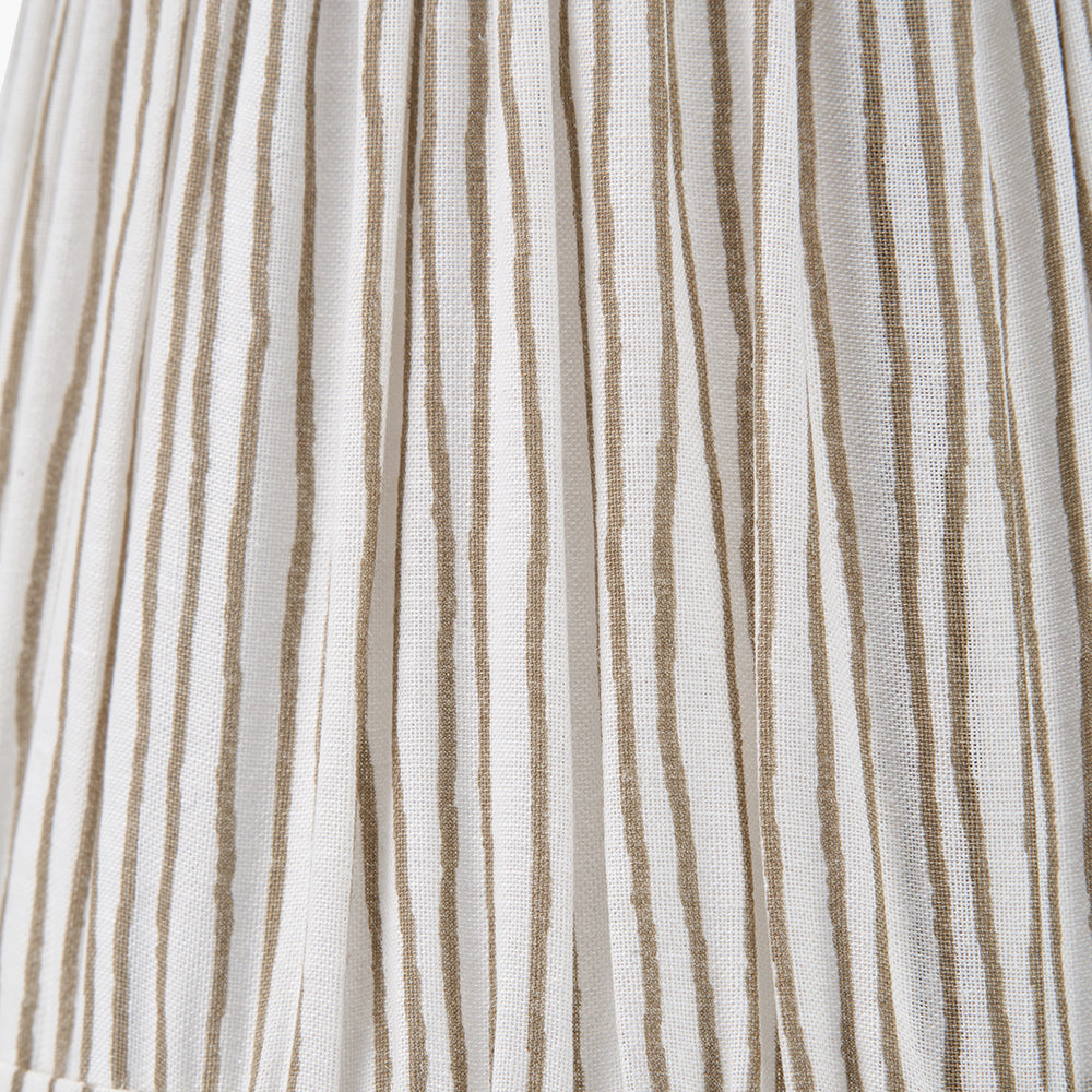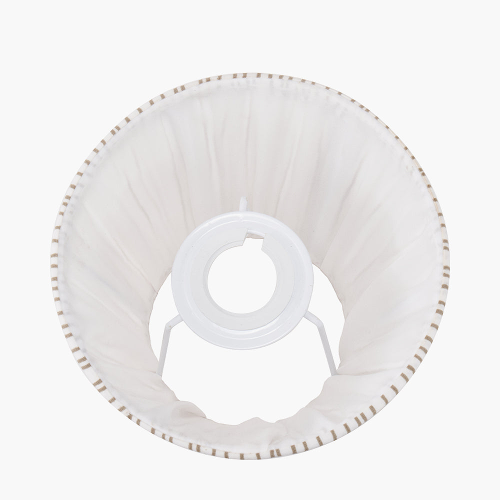 The Thiago 16cm cotton gathered mushroom pleat, tapered lampshade features a striking stripe pattern, in a colour a palette of natural and white. The stunning lampshade will look great on a multitude of bases.