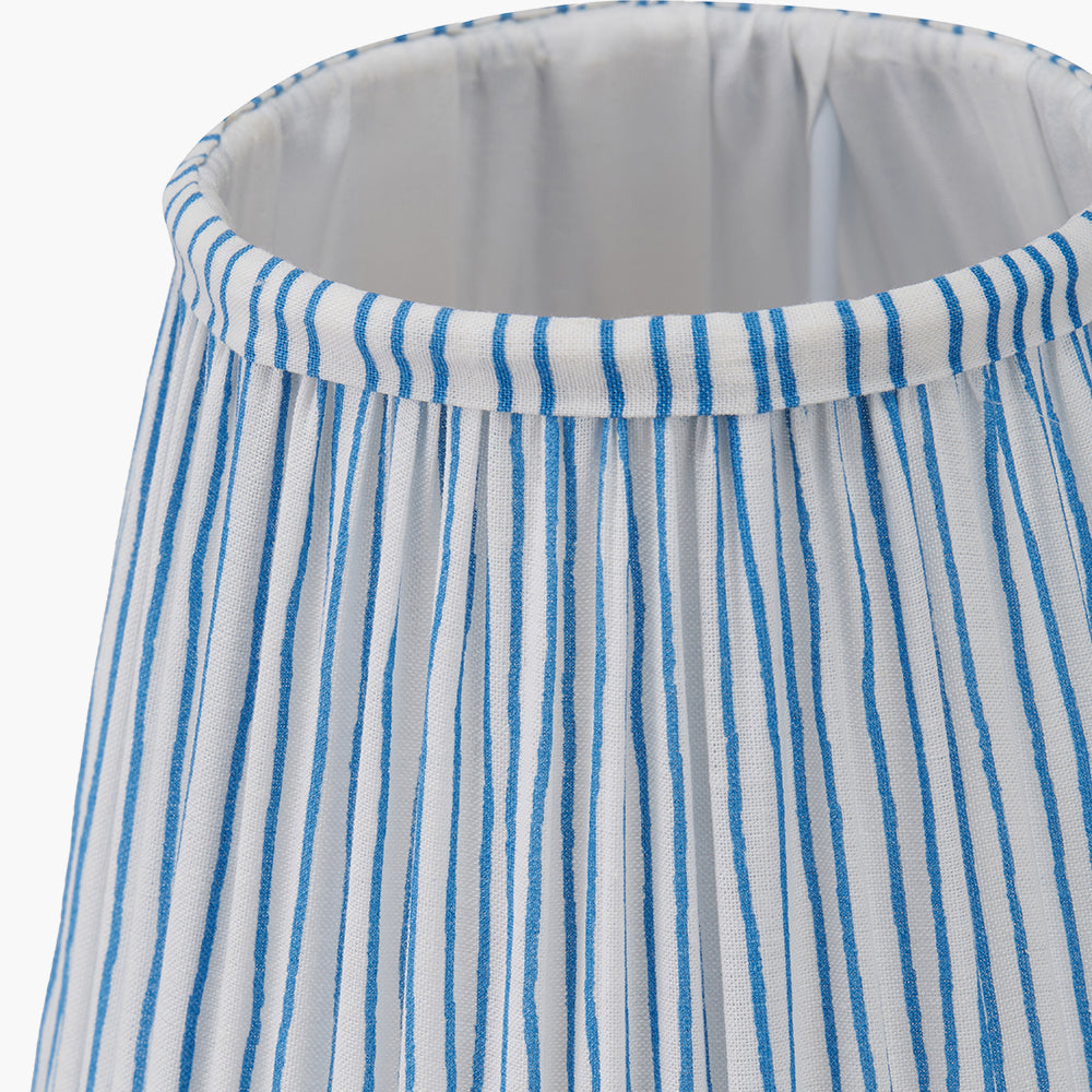 The Thiago 16cm cotton gathered mushroom pleat, tapered lampshade features a striking stripe pattern, in a colour a palette of blue and white. The stunning lampshade will look great on a multitude of bases.