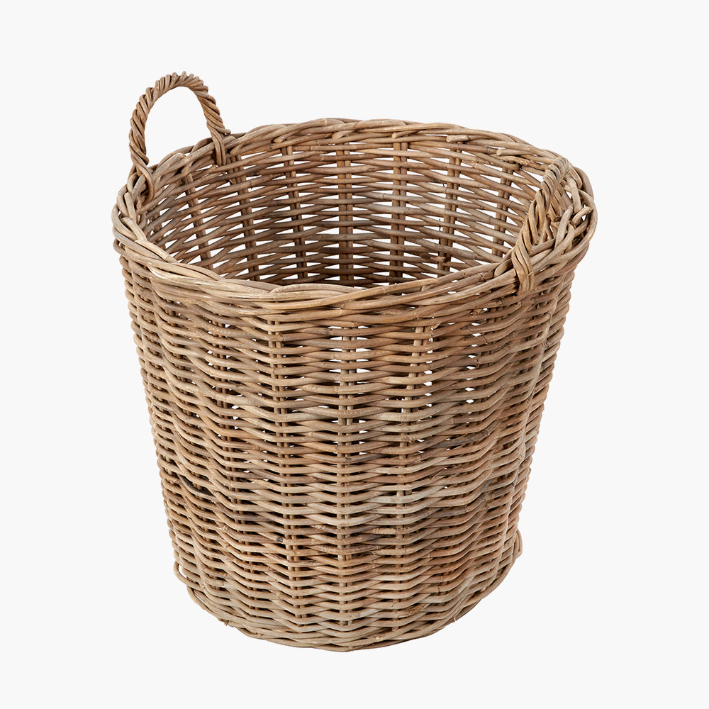 Transform your home organisation with our tobs�� grey Kubu rattan round floor basket, made in Indonesia. The expertly hand-crafted design boasts a beautiful grey finish and durable construction with external handles for effortless lifting. Its generous size and versatility offer endless storage possibilities.