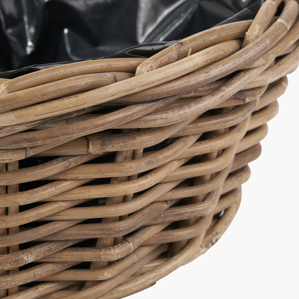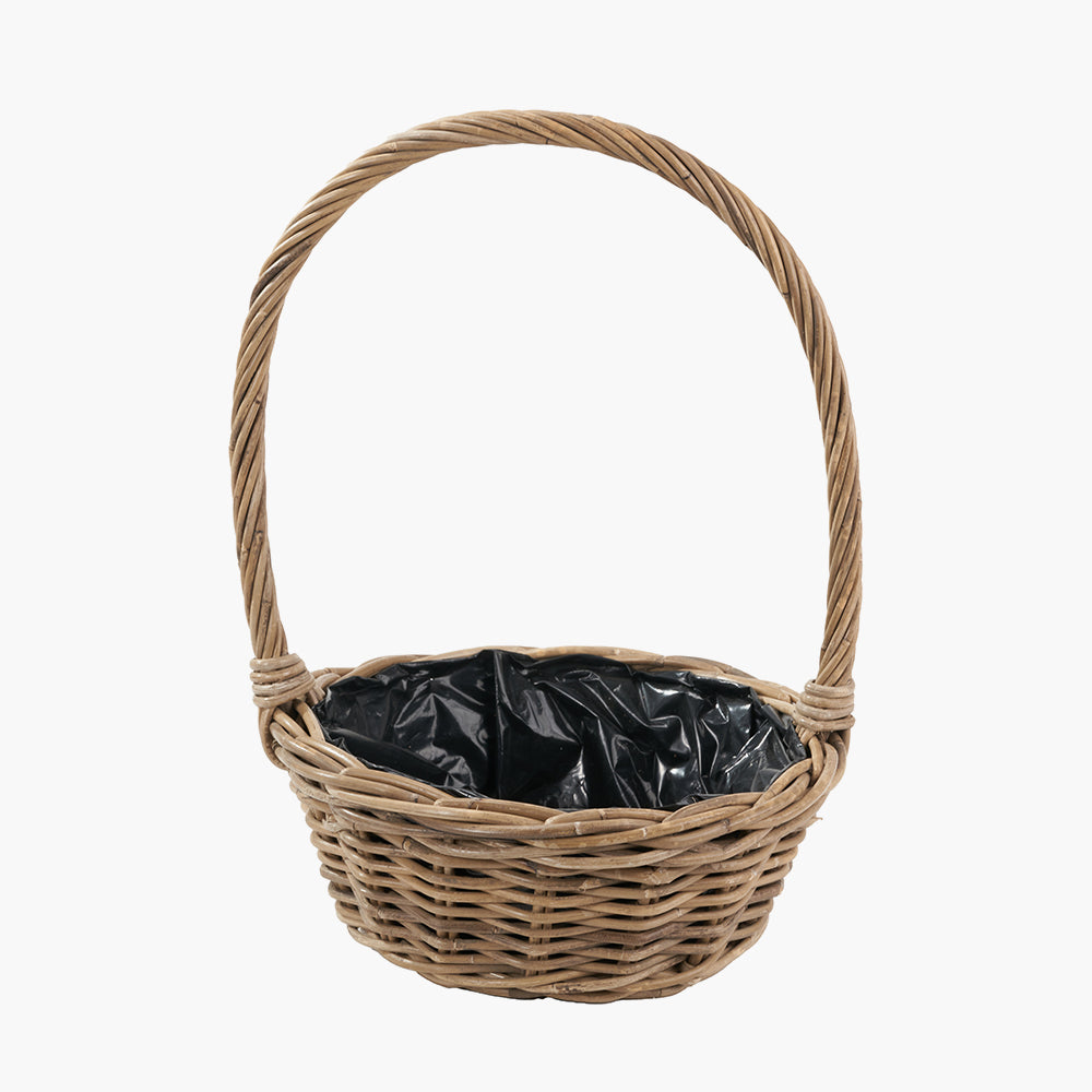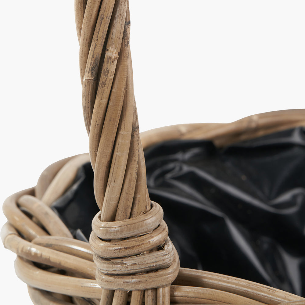 The grey Kubu rattan weave adds a natural texture and neutral tone that complements a wide range of plant styles. The flower basket silhouette elevates greenery, creating a warm, inviting atmosphere in any room or garden corner.