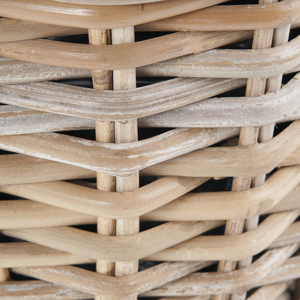 Indulge in the rustic elegance of our tobs�� Kubu rattan basket planter. The woven planter, crafted in Indonesia, in a soft grey colour way, is lined with plastic for effortless planting of your favourite flowers and can be used inside or outside due to its weatherproof nature.